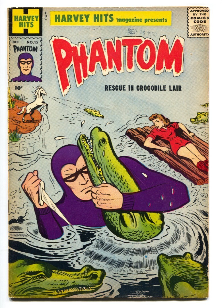 Grade: FN PHANTOM #15 1958-HARVEY HITS #15 comic book-CROCODILE ATTACK-ORIGIN-FN -Harvey Hits #15 -Crocodile attack cover -Origin Grade: FN SKU: U2-30-365