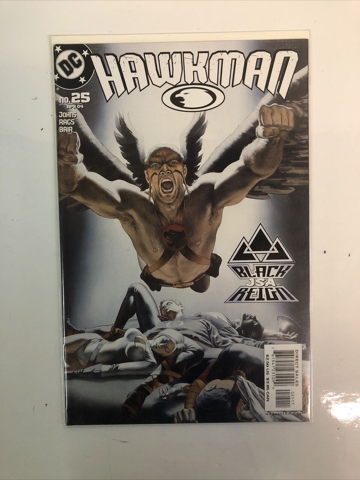 Grade: 9.0 Very Fine/Near MintGet your hands on this very good condition Hawkman comic book set from 2004. This set includes issues #23-25 and features Hawkman as part of the Justice Society of America in the DC Universe. The series title is appropriately named Hawkman and the genre is action-packed with superheroes, adventure, and supernatural elements.This 9.0 very fine/near mint graded set is a must-have for any US comics collector. Published by DC Comics, this modern age set is a great addition to your collection. Don't miss out on Consequential Set #23-24-25 of Hawkman, part of the Black JSA Reign series.