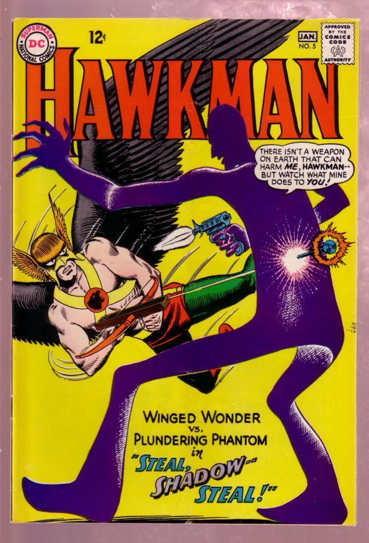 Hawkman #5 1964-shadow thief-murphy anderson art-dc vg/fn striking cover. Murphy anderson art. Glossy cover, vertical crease in middle of book, very lite appearance on front cover. 1964 grade: vg/fn sku: do-14-087