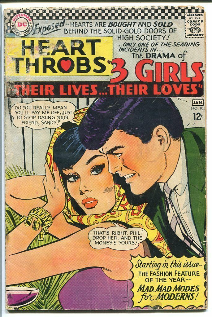 Heart Throbs Issue: 105 / Year: 1967 Condition: G/VG1960'S DC ROMANCE COMIC. These are so great and full of classic art and dramatic tales of love and loss. Publisher: DCSku: DO-43-036 Over 100,000 mail orders processed! Buy with confidence.