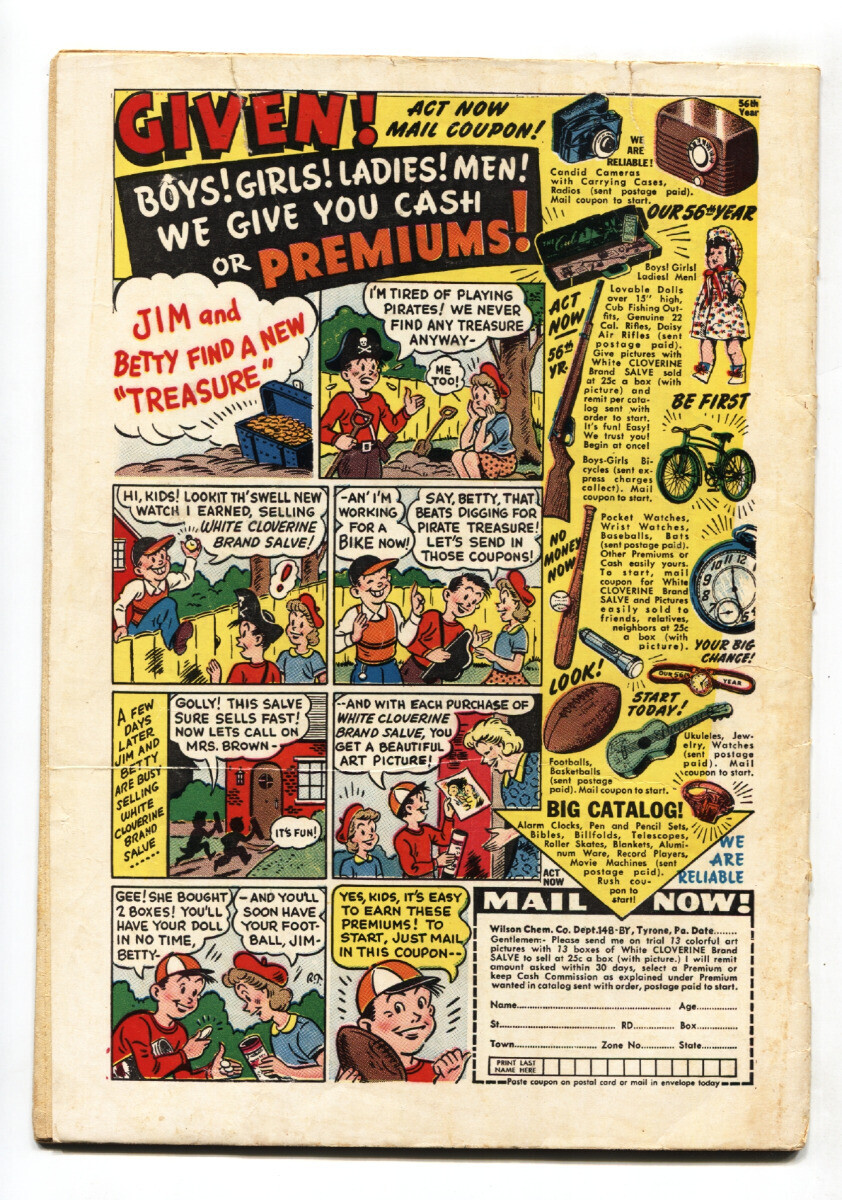 Grade: G- Hedy of Hollywood #42 comic book 1951- Atlas Humor- Good Girl art Spicy good girl art. Has a 1" tear through top of book. Cover loose from top staple. Complete, no restoration. Grade: G- SKU: CK02-352