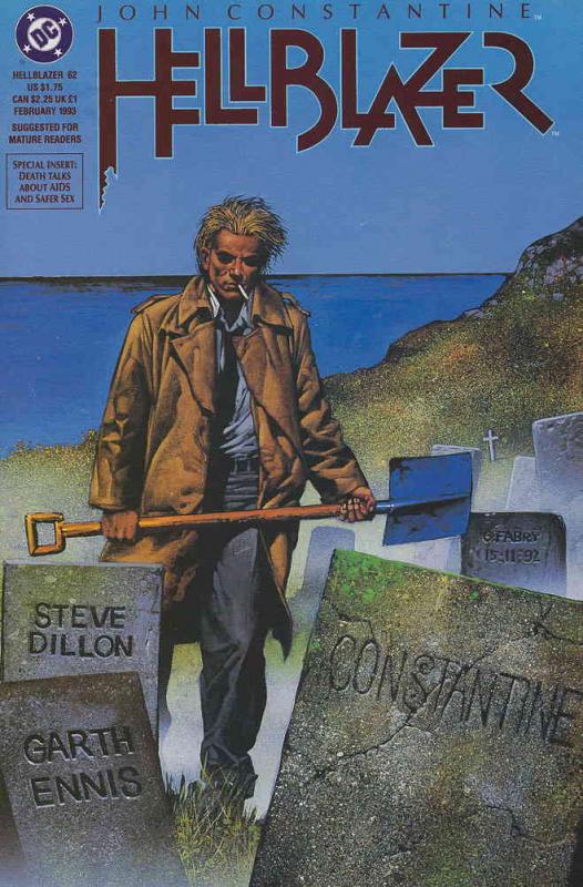 Item: Hellblazer #62 | Publisher: DC | Cover Date: February 1993 | Writer: Garth Ennis | Artist: Steve Dillon | Cover Artist: Glenn Fabry | Storylines: End of the Line | Notes: Includes “Death Talks About Life” AIDS ... Read More