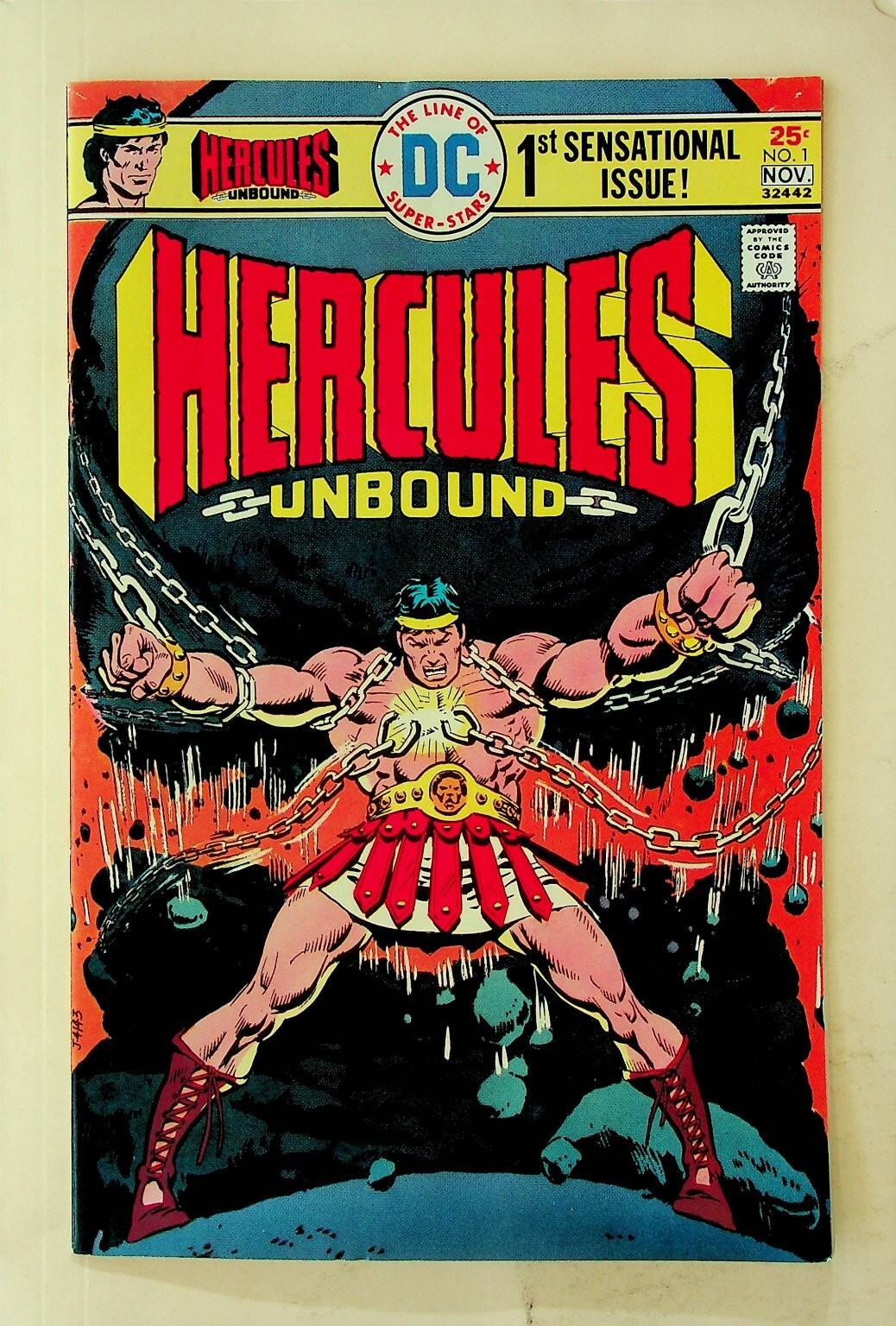 Grade: 6.5 Fine+ This is a single issue of Hercules Unbound #1 published by DC Comics. This inaugural issue is marked as the "1st SENSATIONAL ISSUE!" and features the powerful hero Hercules breaking free from chain ... Read More