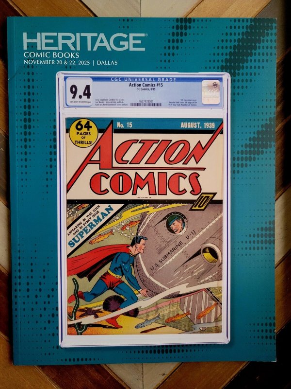 Heritage Auctions: Comic Books & Memorabila - Nov 20 + 22, 2025 Dallas Signature Auction 7427 Action Comics #15 Cover Excellent condition. Only light handling. ~~~~~~~~ The item shown is the exact item you will rece ... Read More