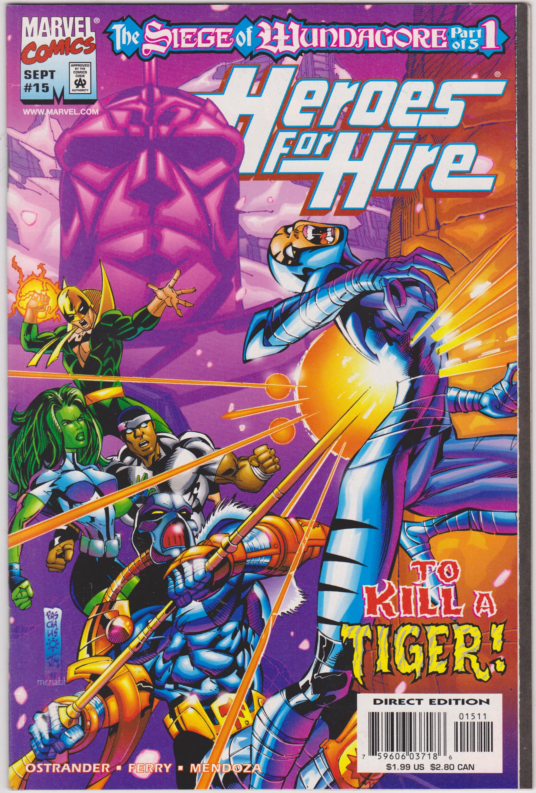Heroes for Hire #15 by Marvel Comics copyright 1998. I have graded the comic book, using the Overstreet Grading Guide, at FINE/VERY FINE with the following defects: Light stress marks along the spine. The corners are rounded. There is light yellowing of the pages.Seller Information