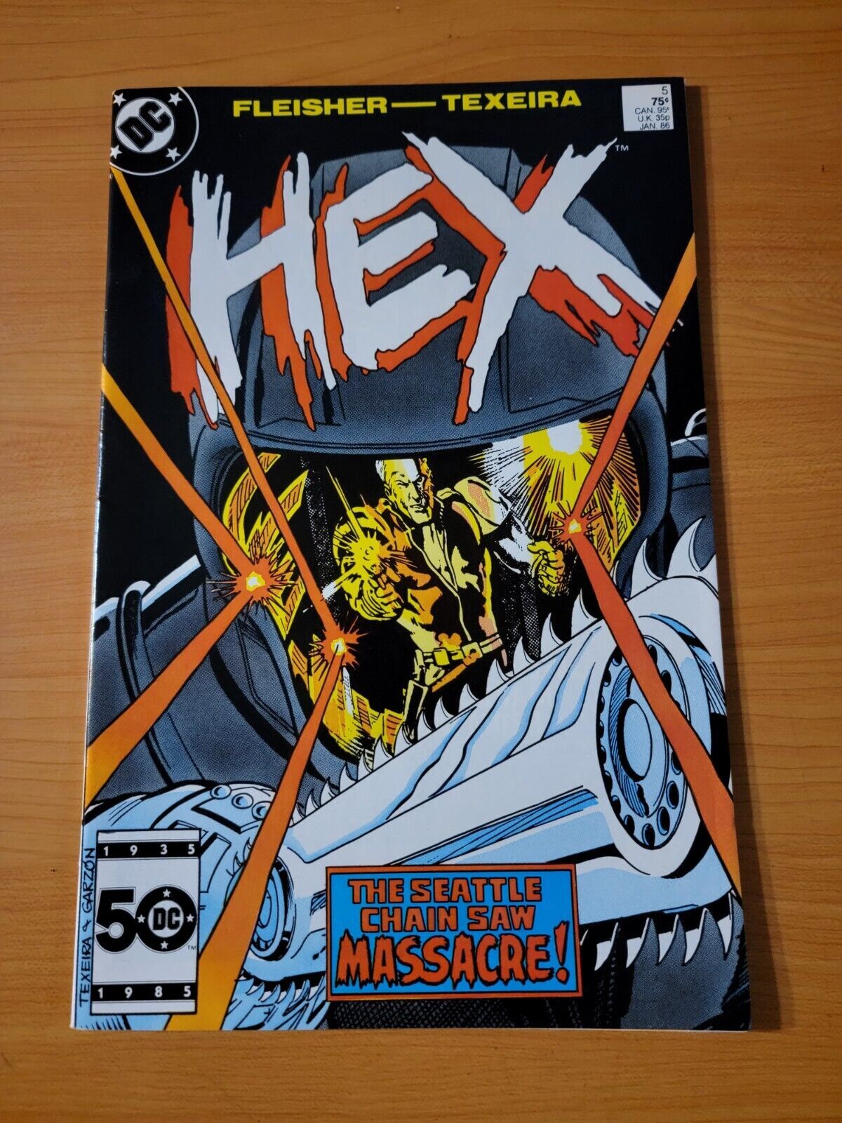 Item DescriptionHex #5 Direct Market EditionPublisher: DC ComicsPublished: 1986Item Grade/ConditionGrade: NEAR MINTFor more information about this grade and other grades, please see our grading standards.~ WE TAKE HIGH DEFINITION PICTURES OF OUR COMICS ~ For more detail use the ZOOM Function and check them out yourself! ~Shipping Info:United States: Comic Book & Magazine Orders of all sizes, big and small ship for a flat Single Shipping ChargeInternational: We use Calculated Shipping! ~ This insures that you get the LOWEST POSSIBLE COST! ~ Please give us one business day to calculate large orders! The Calculator for Hip is pretty bad for international, contact us if you are looking to order multiple books so we can help you make it work on the back end! As a courtesy to our customers, we insure all orders over 50$ US ~ YOU DONT PAY EXTRA!Delivery TimeWe process and ship all orders within 1 business days. Once shipped, estimated U.S. transit time is 2-10 business days; international 14-21 business days.(Orders placed on Friday afternoon as well as weekends will be shipped the next business day as we do not ship on the weekends).PackingOmnomax Traders has mastered packing to ensure our orders of a "damage-free transport."Using the following methods, we have seen a nearly perfect 99% success rate for undamaged comics!Here is how our orders ship:All Orders :Bagged AND Boarded, ALWAYS NO EXCEPTIONS!Shipped in a Gemini Comic Mailer OR Tightly secured between 4x stiff pieces of corrugated cardboard (double Sandwiched)Sealed on all 4 sides with strong packing tape (Items doesn't even wiggle).:*Now this method is nearly perfect! however we have seen damage happen to items ( only once or twice a year ) ~ this is often due to bad handling by the postal service. Always remember to contact us if this happens! we are committed to quality service!*Offers History