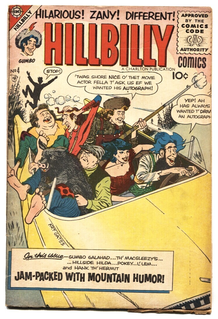 Grade: VG/FNHillbilly Comics #4 1956- Rare Charlton series- Mountain Humor VG/FN Final issue of a super rare Charlton series. Was this a limited distribution issue? Bizarre humor. Grade: VG/FN SKU: DHV-06-259