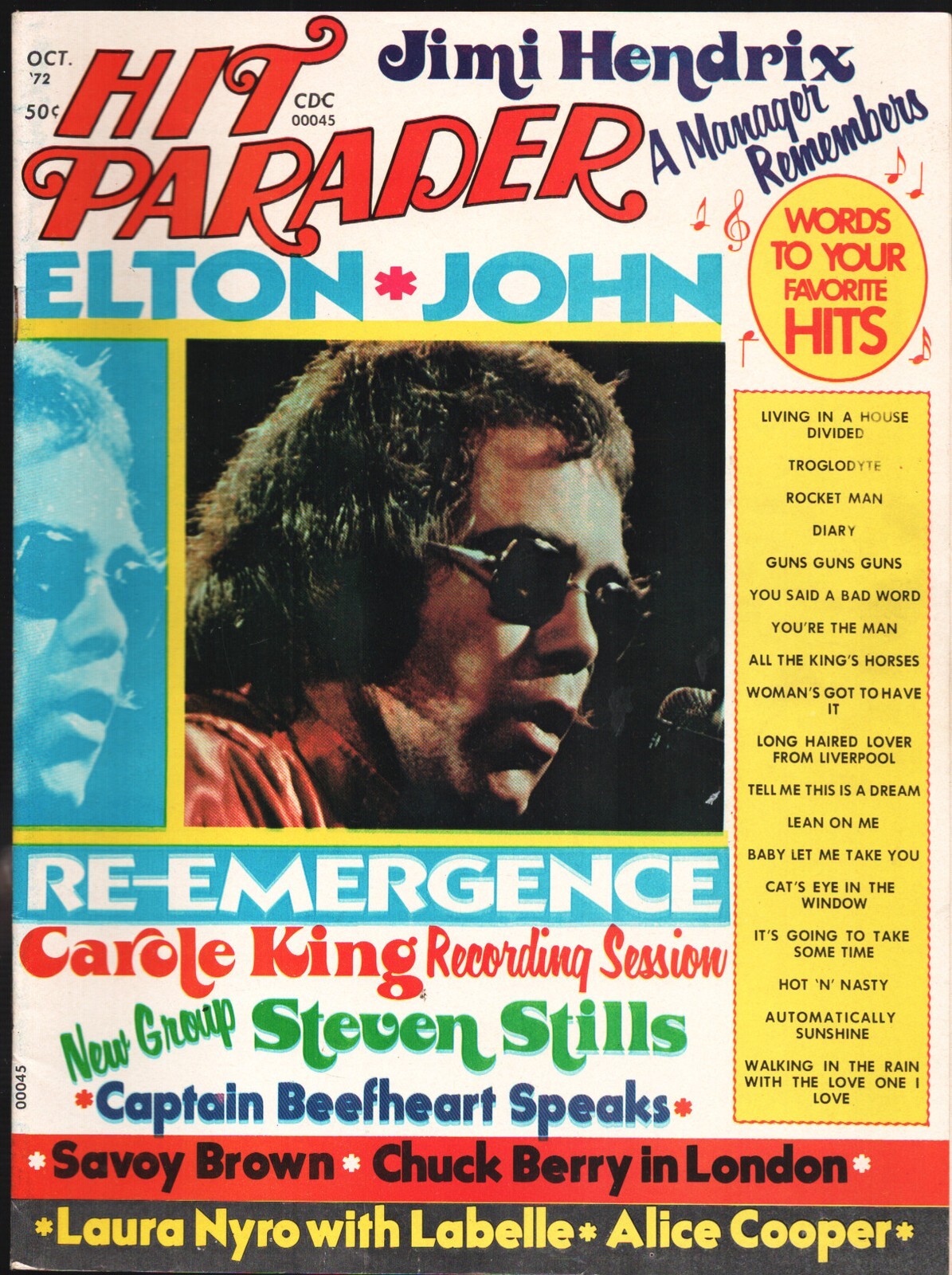 Hit Parader 10/1972-Elton John-Carole King-Alice Cooper-Chuck Berry -Elton John cover & story -Carole King, Jimi Hendrix, Alice Cooper, Chuck Berry -Savoy Brown color centerfold -Photos & info -High grade Title: Hit Parader Issue: N/A Grade: VF SKU: MEN29-006Seller Information