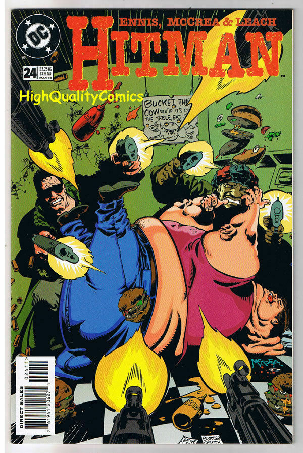 Condition: See more info in our description area....HITMAN #24, NM+, Garth Ennis, John McCrea, Who Dares, more in store HITMAN #24..... Name of Comic(s)/Title?: HITMAN #24.... Publisher: DC Comics.... Art by/Featuring/Stories?: Featuring a copy of the HITMAN comic.....Writer(s) : Garth Ennis...Artist(s) : John McCrea....Story(s) : "Who Dares Wins - Part 2"......Cover by : McCrea... Grade of item? : This copy is in NEAR MINT+ condition.... Created when? : 1998... Front Cover description : As new, with very slight handling wear (if any).... Back Cover description : As new ... Page quality description : As new...... Tape or writing?: No... How are staples?: Staples are secure.... Flat & supple : Yes.... Don't get caught napping...Will come bagged & boarded... 1st Printing!!... ... ... ...Lots more HITMAN, Garth Ennis, MOVIE/TV, & OVERSTOCK items in our store. : Here! Be sure to check out all of our current on-going auctions! Lots of great product at affordable prices! Bookmark our listings with (control + D). Lots more coming in the next few weeks... Check out the scan(s). If you like this? Our store name is HighQualityComics...aka HQComics... We have been doing mail-order since 1988. We guarantee Absolute Satisfaction on All Orders! Shipping in a box. Combine auctions to save on postage. INTERNATIONAL CUSTOMERS : Email us for international shipping rates & acceptable ways to pay. INTERNATIONAL CUSTOMERS : Email us for acceptable ways to pay and shipping options, before you place an order. Thanks! This listing created with GLETech Multiple Selling Channel tools.