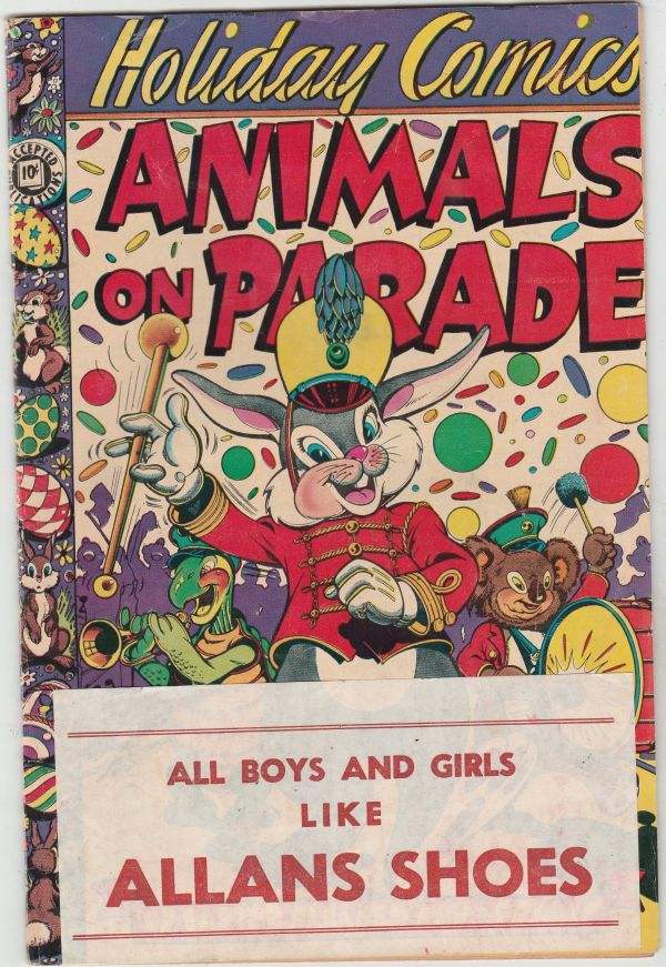 Holiday Comics #2 - Animals On Parade COVER - Classic L.B. Cole Wow! This book has very sharp rich color and nice eye-appeal on this all-time-classic L.B.Cole cover! There is a shoe store give-away paper pasted on ... Read More