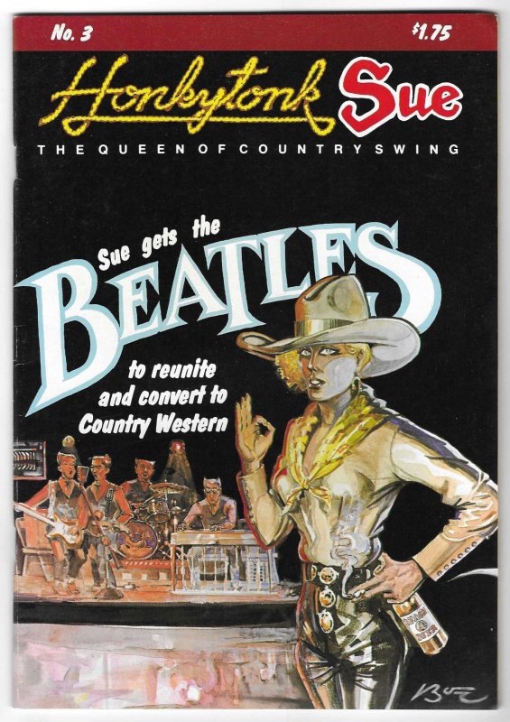 Honkytonk Sue #3 is a black-and-white comic book published in August 1980 by Bob Boze Bell, who also wrote and drew the issue. The comic is known for its absurd storylines, which include Sue getting the Beatles to r ... Read More