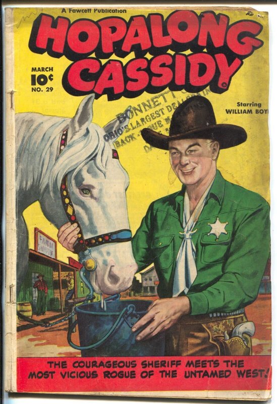 Hopalong Cassidy Issue: 29 / Year: 1949 Condition: VG--William S Boyd and Topper on cover -Old store stamp on cover Publisher: FawcettSku: LI-05-313 Over 100,000 mail orders processed! Buy with confidence.