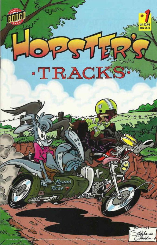 Item: Hopster's Tracks #1 | Publisher: Bongo | Cover Date: 1998 | Writer: Stephanie Gladden | Artist: Stephanie Gladden | Cover Artist: Stephanie Gladden | Storylines: The Last American Eyesore | Notes: B&W | With Economy shipping, each additional comic ships for just 50 cents more to customers in the USA. This listing contains a stock photo and information from ComicBase™ and © Human Computing. The stock photo is for reference only. If you would like to see a photo of the actual item, please message us prior to purchasing.Seller Information