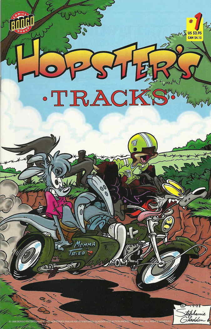 Item: Hopster's Tracks #1 | Publisher: Bongo | Cover Date: 1998 | Writer: Stephanie Gladden | Artist: Stephanie Gladden | Cover Artist: Stephanie Gladden | Storylines: The Last American Eyesore | Notes: B&W | With E ... Read More
