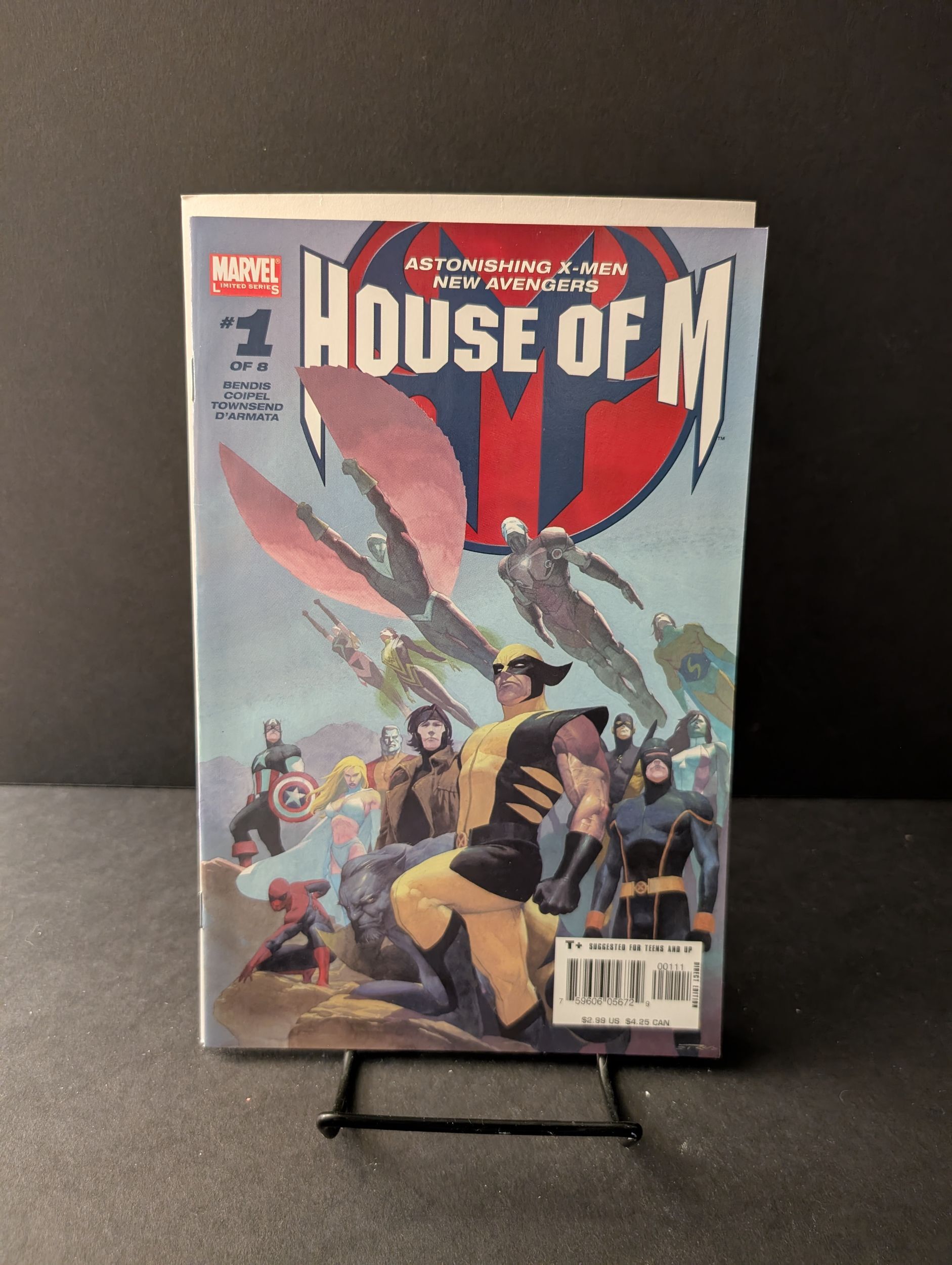 Written by BRIAN MICHAEL BENDIS. Pencils by OLIVIER COIPEL. Cover by Esad Ribic. HE MARVEL EVENT OF THE DECADE IS HERE!! The Avengers and the X-Men are faced with a common foe that becomes their greatest threat: Wanda Maximoff! The Scarlet Witch is out of control and the fate of the entire world is in her hands. Will Magneto help his daughter or use her powers to his own benefit? Starring the Astonishing X-Men and the New Avengers!! You know how sometimes you hear the phrase: AND NOTHING WILL EVER BE THE SAME AGAIN? Well, this time believe it, buster!! NOTHING WILL EVER BE THE SAME AGAIN! 32 PGS./T+ Suggested for Teens and Up ...$2.99 please note: Each issue of house of m will have a special variant cover. Cover price $2.99.Seller Information