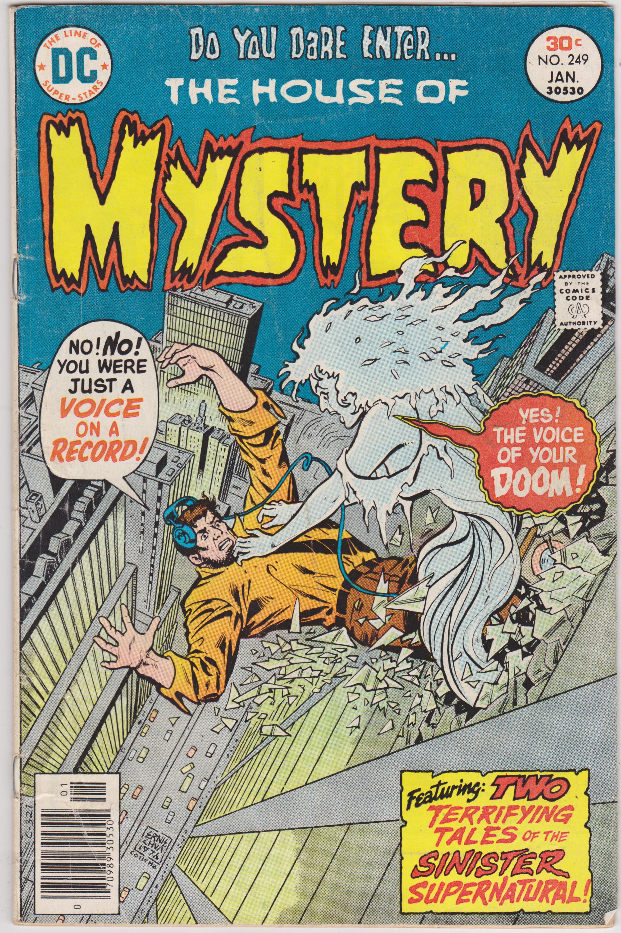 House of Mystery #249 by DC Comics copyright 1976. I have graded the comic book, using the Overstreet Grading Guide, at VERY GOOD with the following defects: Light stress marks along the spine The corners are rounded. There are folds in the cover. There is yellowing of the pages.Follow me on twitter at @denofwonder for update.