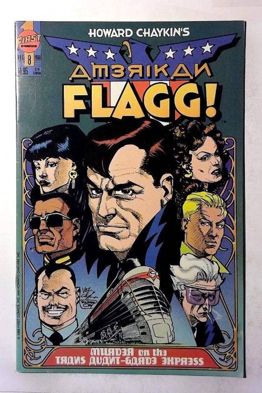 View All ListingsSee FeedbackAdd to Favorite SellersDESCRIPTIONHoward Chaykin's American Flagg #8 First Comics 1988 8.0 VF Very Fine Condition Copper Age Comic Book 2nd Series 1st PrintingHoward Chaykin's American Flagg #8 (1988) Reuben and surfer Ian Cambridge pursue the people who have Soviet founder Lenin's body in a chase that leads to the Trans-Avant Garde Express in "Red Highlights and Permanent Waves – Part 4." Script by Howard Chaykin & John Moore and art by Mike Vosburg & Richard Ory. Issue also has a guide to the "Trans-Avante Garde Express" train. Increase your comic book collection and enjoy this comic book featuring stories from First Comics.Our newer comic books for sale are usually* high grade, unread, mostly flat, and glossy back stock. See the listing image(s) to get a better evaluation of the condition. Grading, if provided, is of our personal opinion.COMBINED SHIPPING PROMOTIONAnd to Cart and Pay shipping only once*. Flat rate shipping cost for multiple item orders.*Highest shipping rate is applied to the order. *Exclusions apply - CGC/Slabbed books ship at a higher teir so the cost is only reduced.BEST OFFER ACCEPTEDOffers are excluded from promotional discounts since they represent your requested cost for purchase. Combined shipping can be expected but may not be applied automaticaly if you checkout offers/items separately.SHIPPING DETAILSOrders ships out the same or next business day. The average shipping delivery time range from 2 to 7 days. Shipped using economy options which is usually USPS Ground Advantage.PAYMENT DETAILSPay with Google Pay, PayPal, PayPal Credit, debit card, or most credit cards.FREE RETURNS30 days money back guaranteed. Returns accepted and shipping will be paid by the seller.Check Out Our Other ListingsHip Store:Cosmic-King©2025 cosmic-king. All Rights Reserved.
