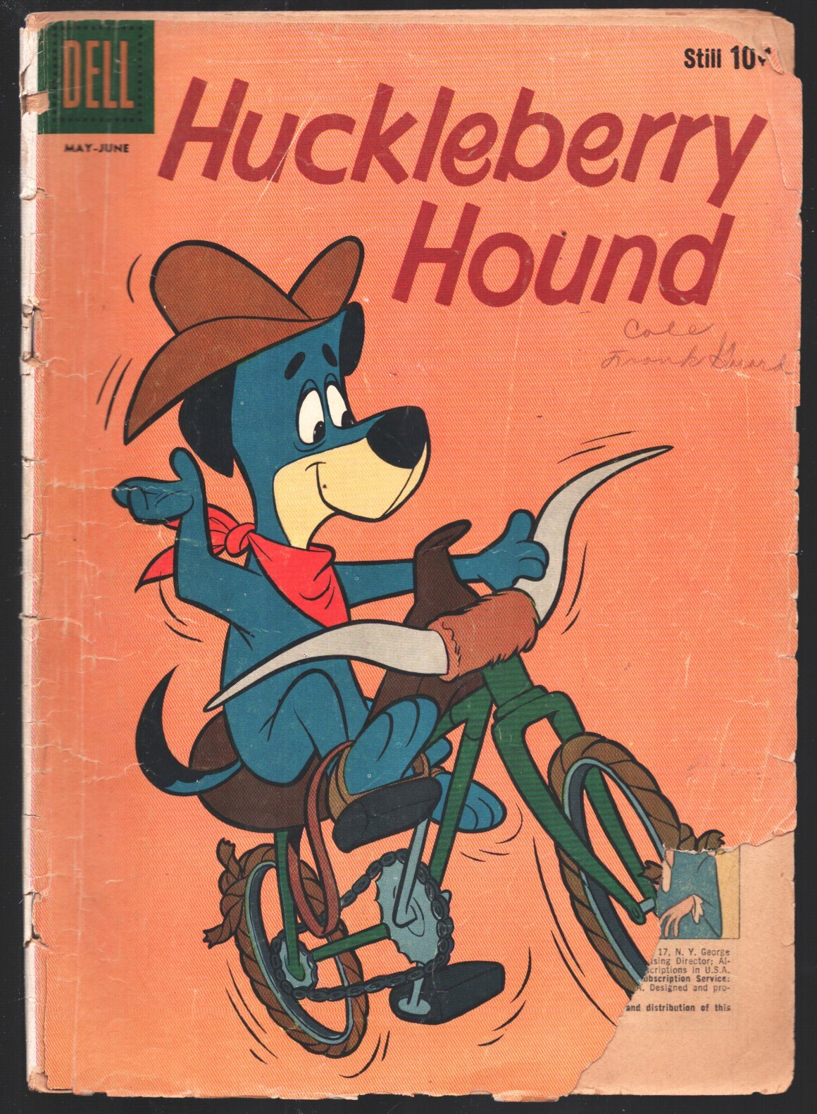 Huckleberry Hound #5 1960-Dell-Based on Hanna-Barbera TV Cartoon series -Based on the Hanna-Barbera TV Cartoon series. -Piece off front cover Title: Huckleberry Hound Issue: 5 Grade: G SKU: LI-134-031