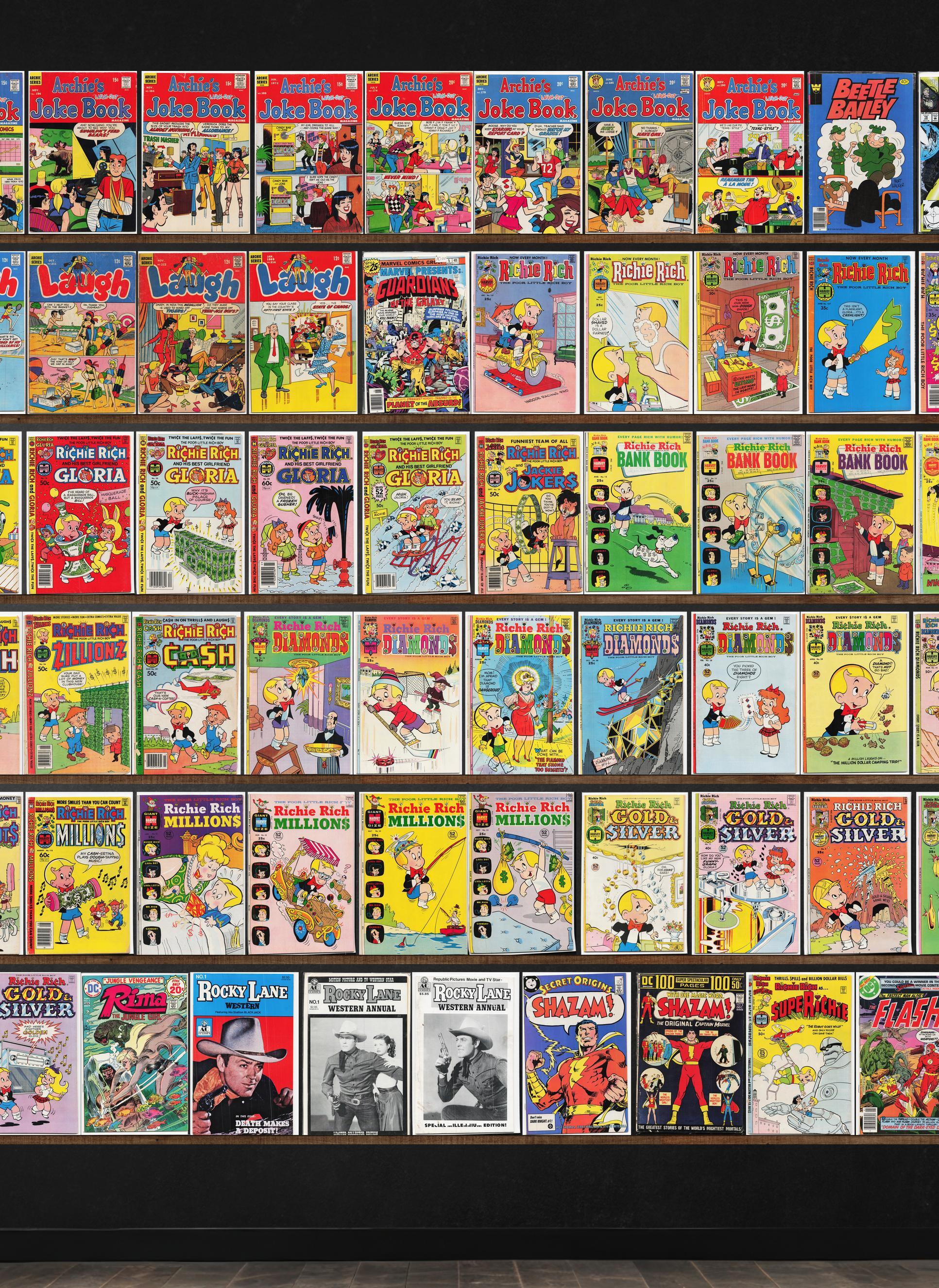 Laugh, Richie Rich, Richie Rich Diamonds, Richie Rich Millions, Richie Rich Cash, Richie Rich Inventions, The Flash, Beetle Bailey, Deathlok, Iron Man, Marvel Presents, Richie Rich Billions, Richie Rich Fortunes, Richie Rich Jackpots, Rocky Lane Western, Secret Origins, Shazam!, Super Richie, Warlock