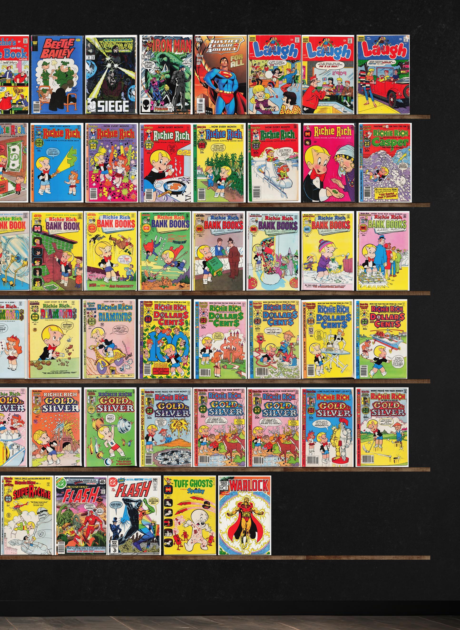 Laugh, Richie Rich, Richie Rich Diamonds, Richie Rich Millions, Richie Rich Cash, Richie Rich Inventions, The Flash, Beetle Bailey, Deathlok, Iron Man, Marvel Presents, Richie Rich Billions, Richie Rich Fortunes, Ri ... Read More