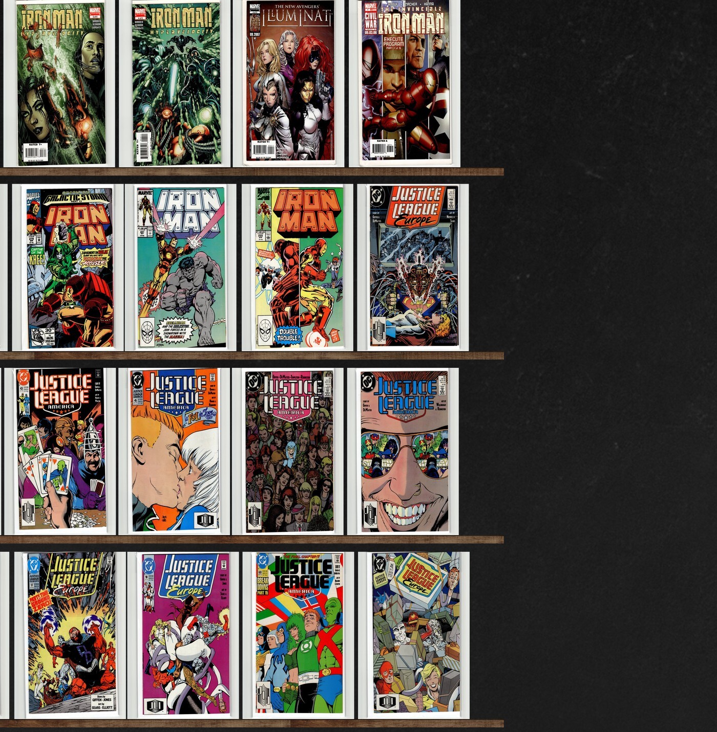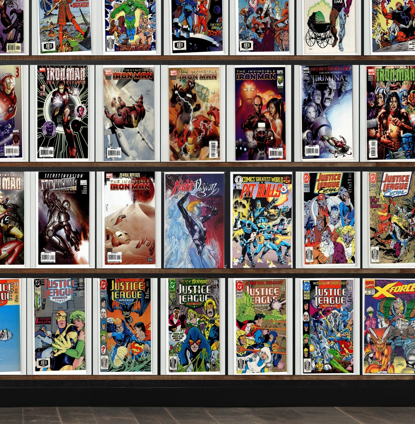 Iron Man, Justice League Europe, Justice League America, Invincible Iron Man, Ultimate Iron Man, Iron Man: Hypervelocity, New Avengers: Illuminati, Justice League Elite, Harbinger, Nightvision, Justice League Intern ... Read More