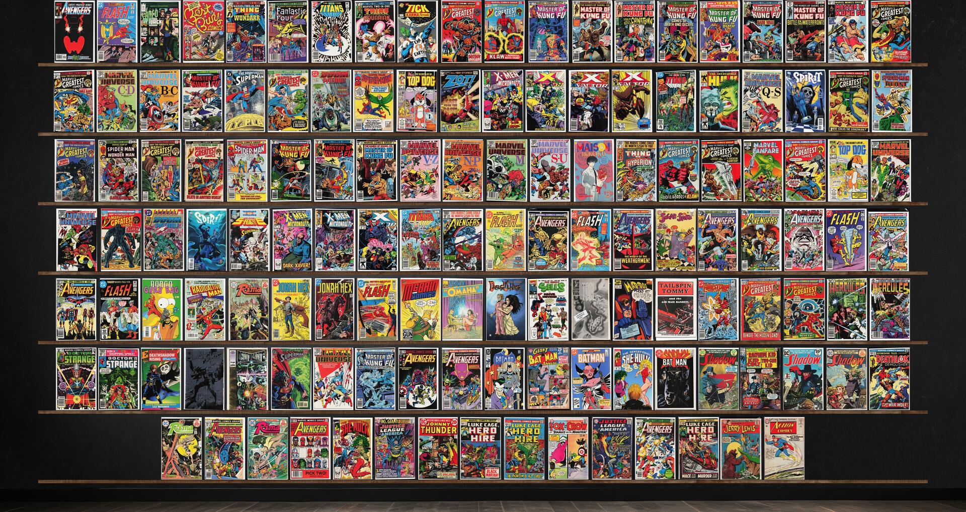 Marvel&, The Avengers, The Flash, X-Factor, Marvel Two In One, The Shadow, Hero For Hire, Marvel Tales, Top Dog, The Spirit, Marvel Team Up, Jonah Hex, Marvel'S Greatest Comics, Hercules, Doctor Strange, Batman Annu ... Read More