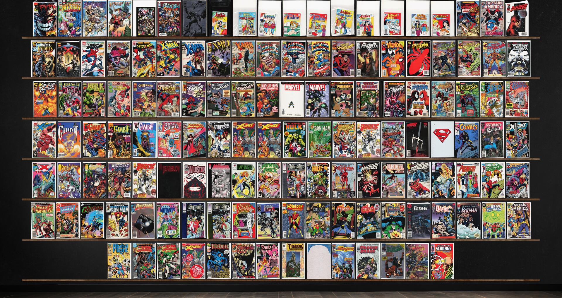 The Spectacular Spider-Man, Captain America, Daredevil, Web Of Spider-Man, X-Force, Silver Surfer, Gambit, The Batman Adventures, The Amazing Spider-Man, Spider-Man, Brigade, Deathmate, All Star Squadron, Prophet, The Uncanny X-Men, What If...?, The Incredible Hulk, Iron Man, Fantastic Four, Pitt, 1963 (1993 Image), Q Unit (1993) Q Unit, Phantom Force, Magnus Robot Fighter, Laugh Comics Digest, Archie&, X-Men Classic, X-Men, The Punisher, Venom: Lethal Protector, Wolverine/Punisher Revelation, Captain Marvel, Deathlok, Hulk, Spider-Man Team Up, Peter Parker: Spider-Man, West Coast Avengers, Youngblood Battlezone, Adventures Of Superman, Dark Horse Comics, Ectokid, X-Factor Annual, Stormwatch, Deathblow, Wildstar: Sky Zero, Bloodstrike, Harbinger, Power Pack, What If?, Robin 3000, Dazzler, Shadowhawk, Warlock Chronicles, Batman Annual, Batman, Detective Comics, Alpha Flight, Foolkiller, Turok, Dinosaur Hunter, Doctor Strange Classics