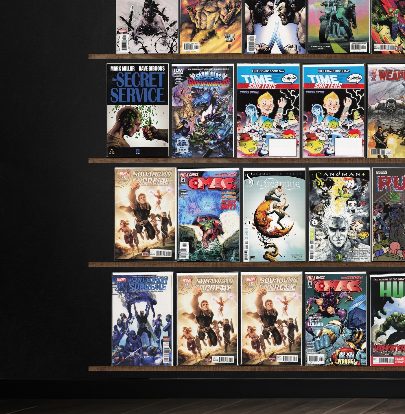Weapon X, Uncanny Avengers, Web Warriors, Wolverine, Weirdworld, Spider-Woman, Squadron Supreme, The Dreaming, Drax, Rust, Elektra, The Sandman: Overture, The Secret Service, Weapon H, O.M.A.C., Original Sin, Thor, Where Monsters Dwell, Nova, Ultimate Comics X-Men, Reactor, Skylanders Superchargers, Time Before Time, Scarlet, Larfleeze, Sam Slade: Robohunter, Nightwing, Squadron Sinister, Hulk, Justice League, Wonder Man, Justice League International, The Incredible Hulk, Superboy, Indestructible Hulk
