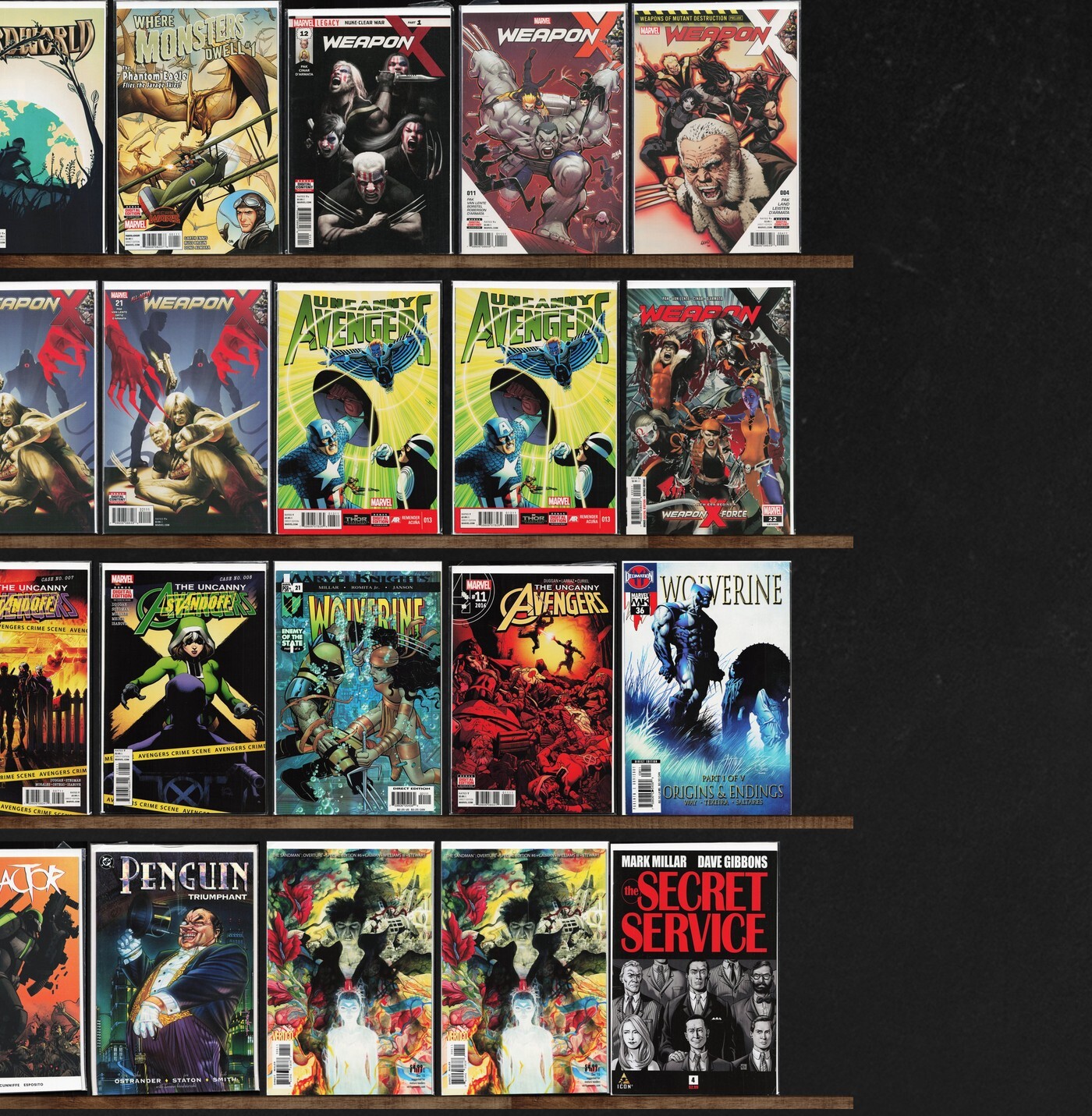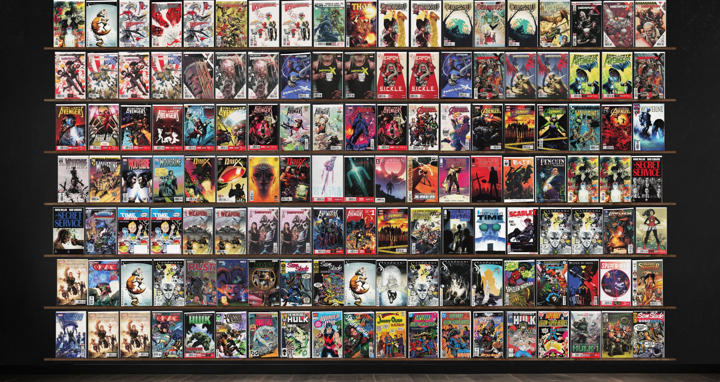 Weapon X, Uncanny Avengers, Web Warriors, Wolverine, Weirdworld, Spider-Woman, Squadron Supreme, The Dreaming, Drax, Rust, Elektra, The Sandman: Overture, The Secret Service, Weapon H, O.M.A.C., Original Sin, Thor, ... Read More