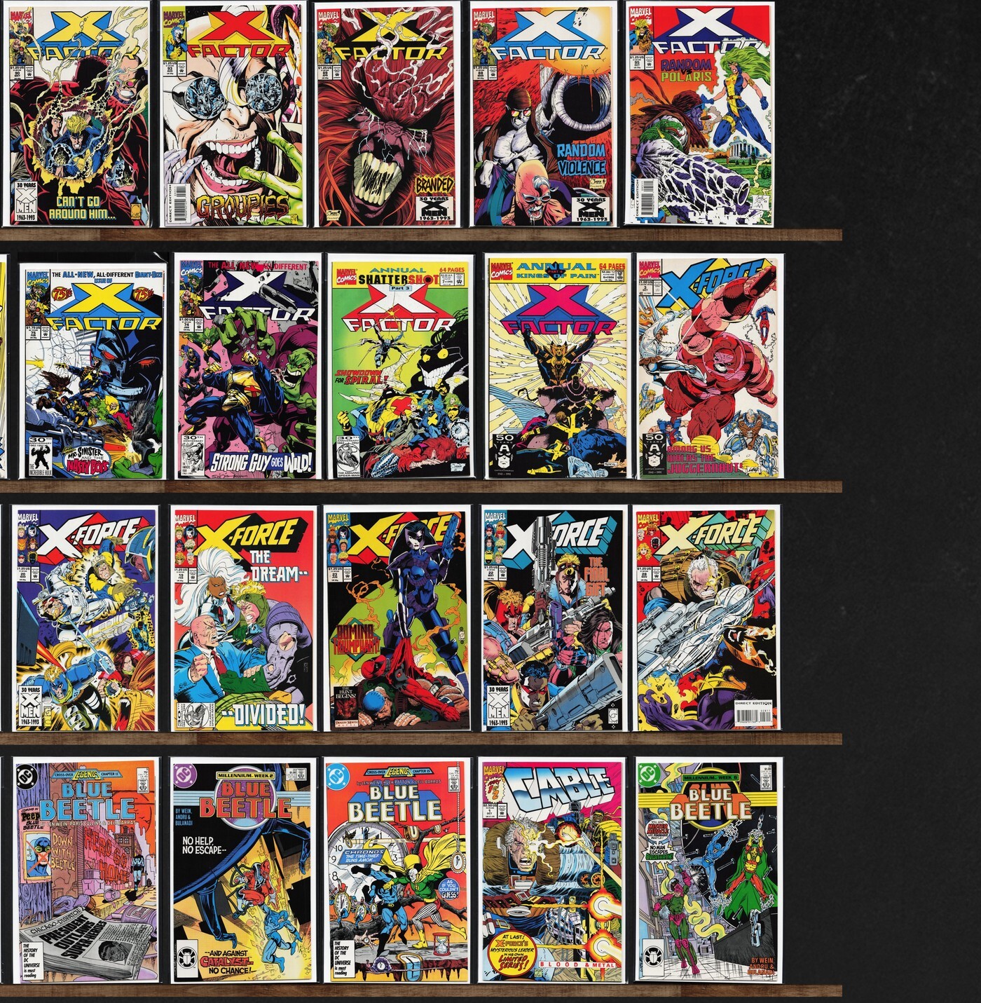 X-Factor, X-Force, Checkmate, Doom 2099, Daredevil, Wolverine, The New Dnagents, Blue Beetle, X-Factor Annual, X-Men, Cosmic Odyssey, Cosmic Boy, Cable, X-Force Annual, The Uncanny X-Men, Death'S Head Ii, Comet Man, Captain Atom, Robin Annual, Codename: Genetix, Doctor Fate