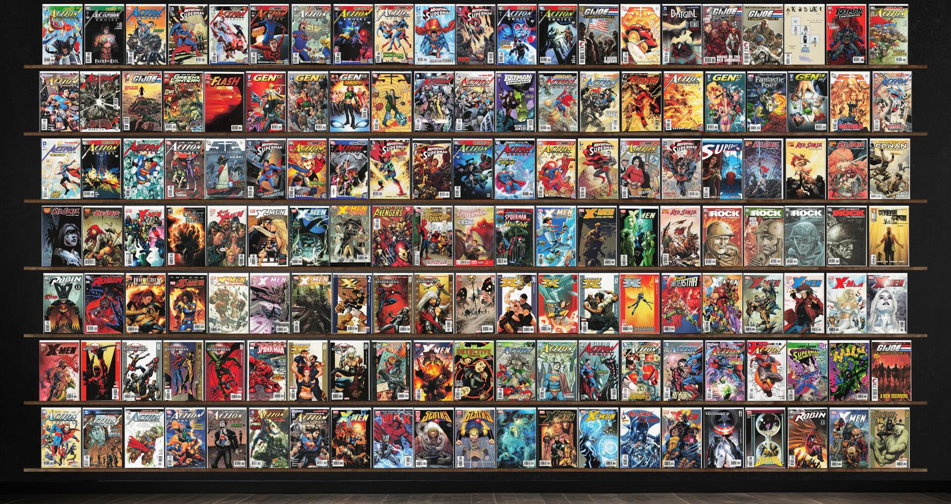 Action Comics, X-Men, Adventures Of Superman, X-Men Unlimited, Ultimate Spider-Man, Red Sonja, Ultimate X-Men, 52, Gen 13, Robin, The Ultimates 2, Sentry, G.I. Joe: America&, Batman Confidential, The Flash, The Amazing Spider-Man, Batgirl, Kabuki: The Alchemy, Action Comics Annual, Green Lantern, Fantastic Four, All Star Superman, Conan The Cimmerian, Ghost Rider, X-Treme X-Men, Marvel Team Up, Ultimate X4, X-Force: Shatterstar, The Sensational Spider-Man, Detective Comics, Incredible Hulk, Hulk