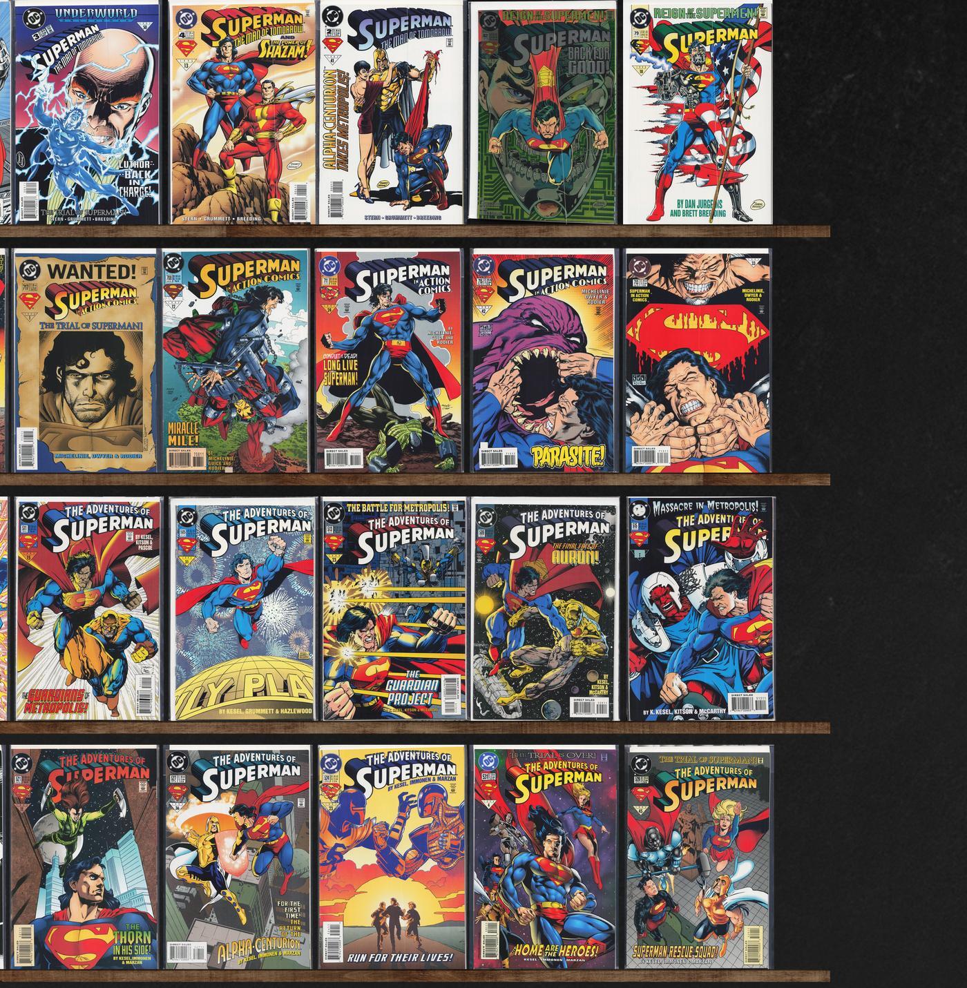 Adventures Of Superman, Action Comics, Superman, Azrael, Detective Comics, The Spectre, Superman/Doomsday: Hunter/Prey, Grimjack, Green Arrow, Batman, Jon Sable, Freelance, Steel, Sgt. Rock Annual