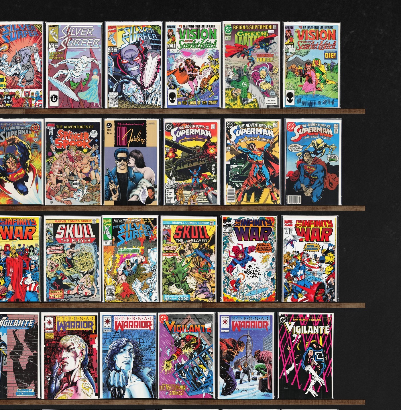 Adventures Of Superman, Silver Surfer, Adventure Comics, The Infinity War, Vigilante, Eternal Warrior, Green Lantern, Iron Man, Eternals, The Spectacular Spider-Man, Inside Image, X-Force, Adventurers, Silver Surfer ... Read More