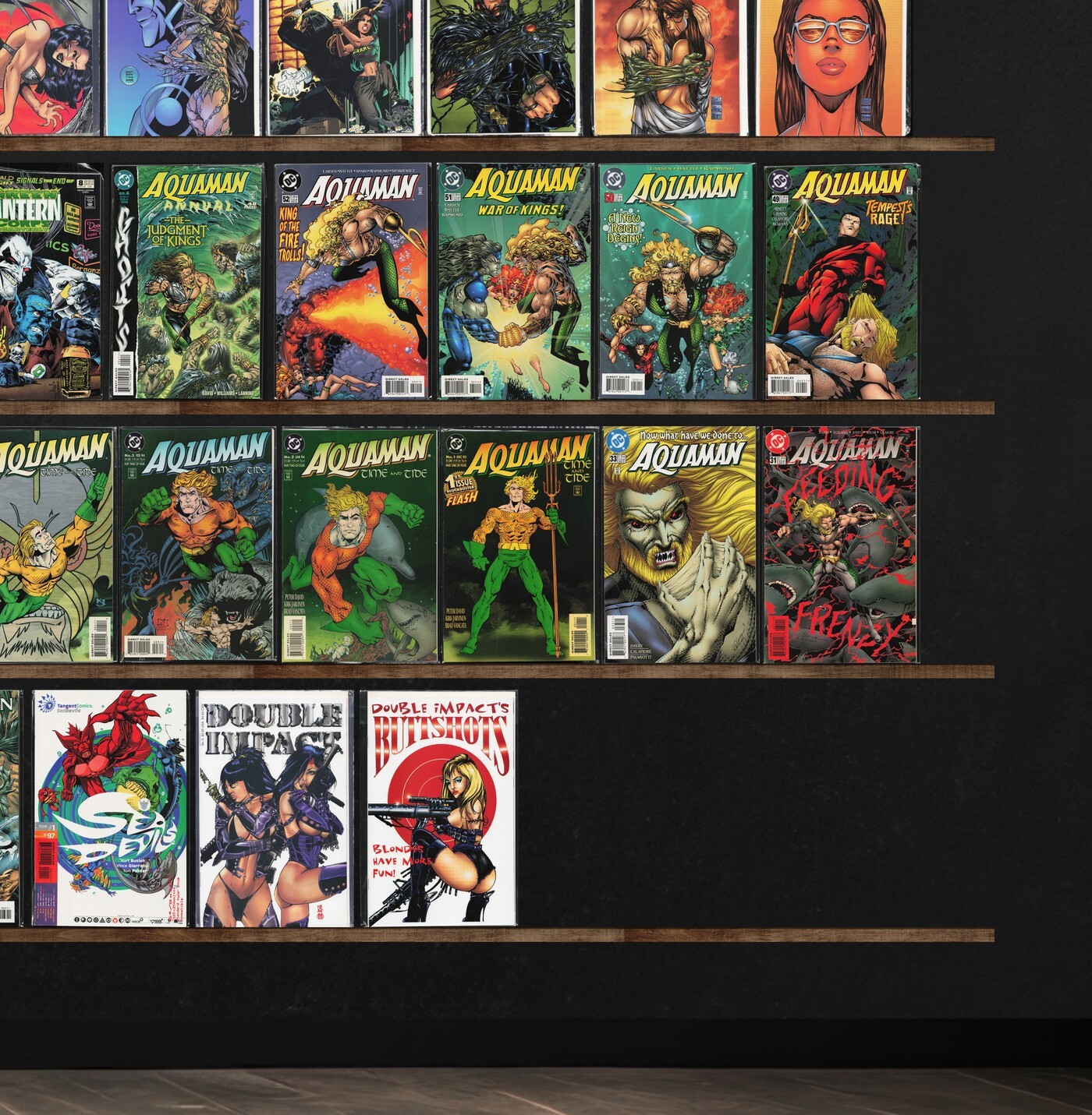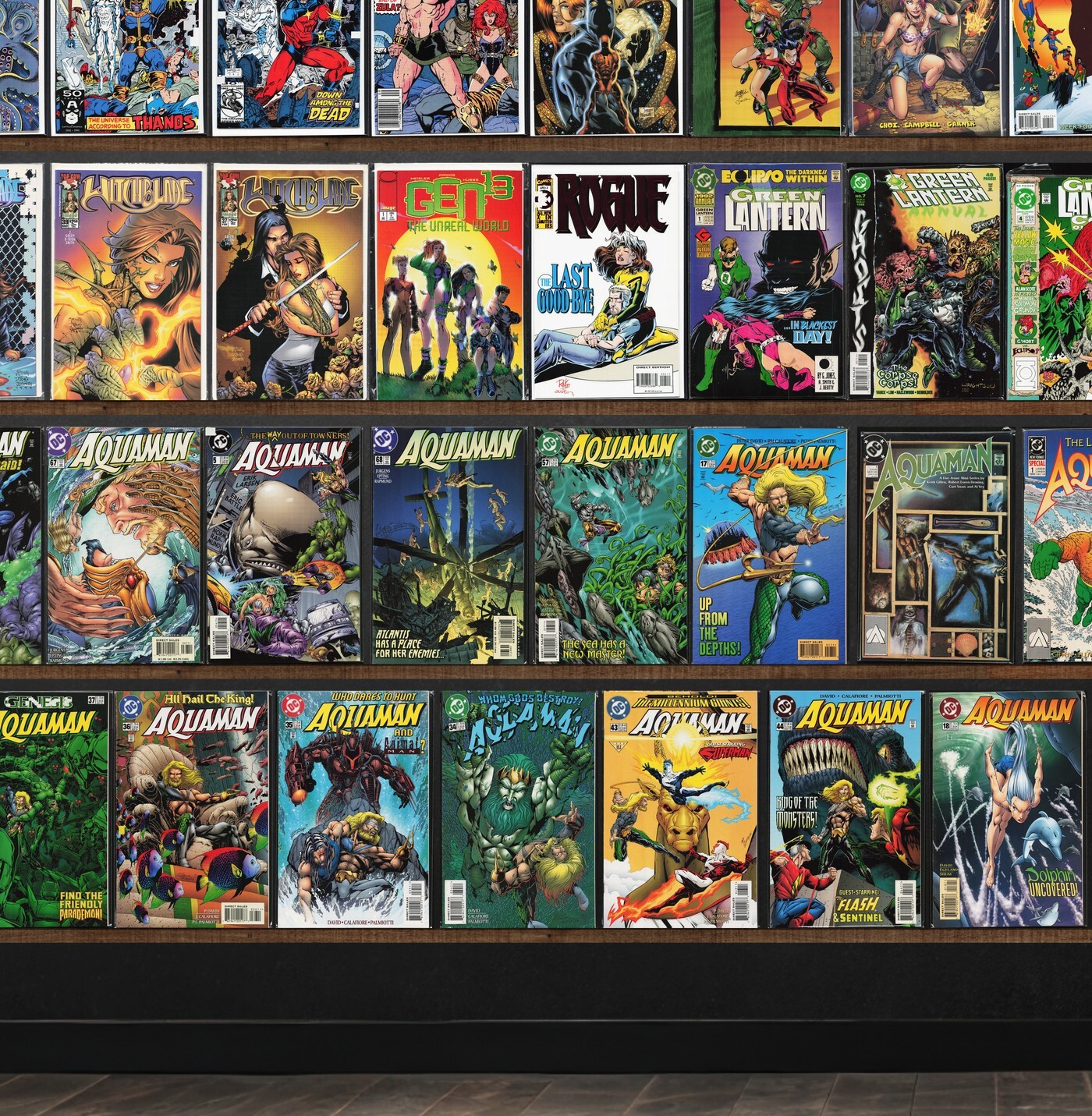 Aquaman, Witchblade, Iron Man, Silver Surfer, Inhumans, Aquaman Annual, Gen 13, Red Sonja, Star Wars: Chewbacca, Danger Girl, Daredevil, Conan The Barbarian, Widow: Metal Gypsies, Green Lantern Annual, Double Impact, Aquaman Secret Files, Storm, Scarlet Witch, Dc/Marvel: All Access, The Final Night, Rogue