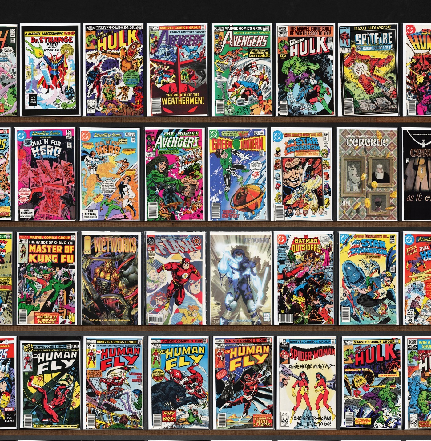 Captain America, The Avengers, Green Lantern, Adventure Comics, The Human Fly, The Incredible Hulk, All Star Squadron, Cerebus, Fantastic Four, Shogun Warriors, The Flash, Star Hunters, 1St Issue Special, Wetworks, Spider-Woman, Howard The Duck, Freedom Fighters, Showcase, Avengers: Earth&, All Star Squadron Annual, Blackhawk, Amazing Adventures, Avengers, The Avengers Annual, Action Comics, Black Lightning, The Amazing Spider-Man, Son Of Satan, Marvel Premiere, Aquaman, Detective Comics, X-Men, Micronauts