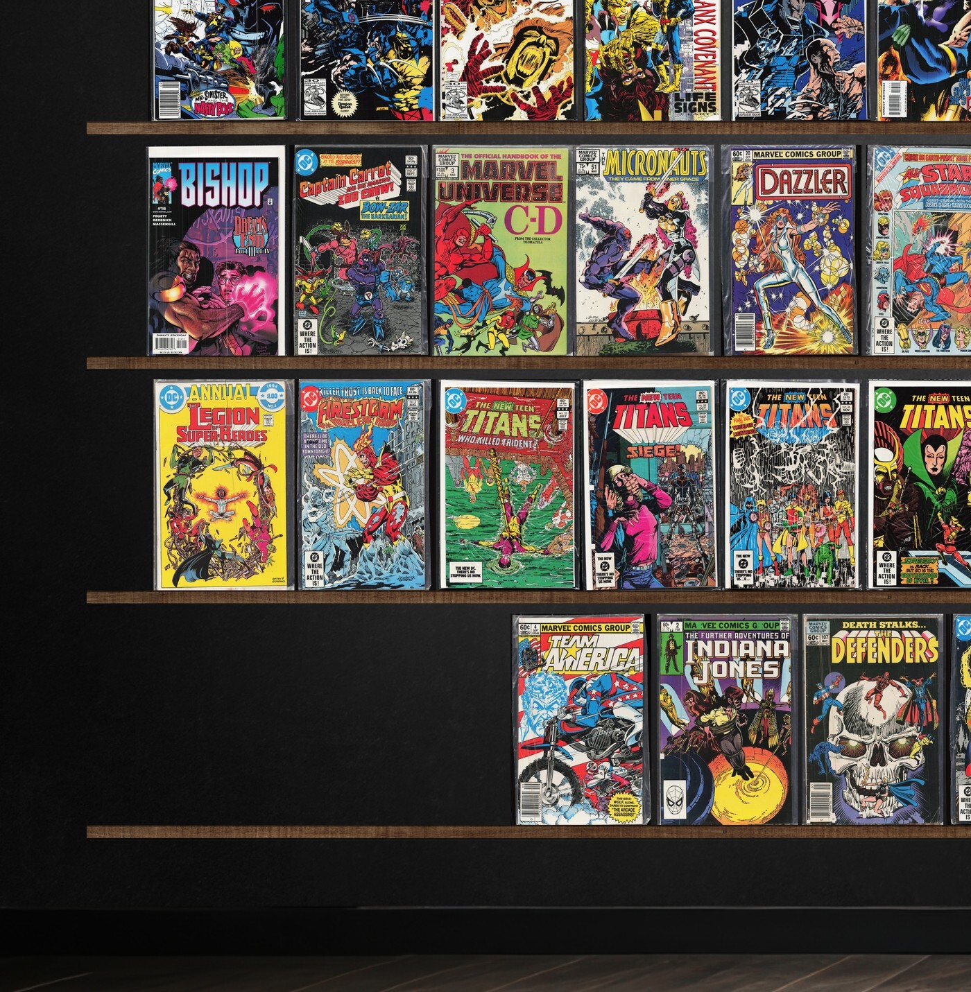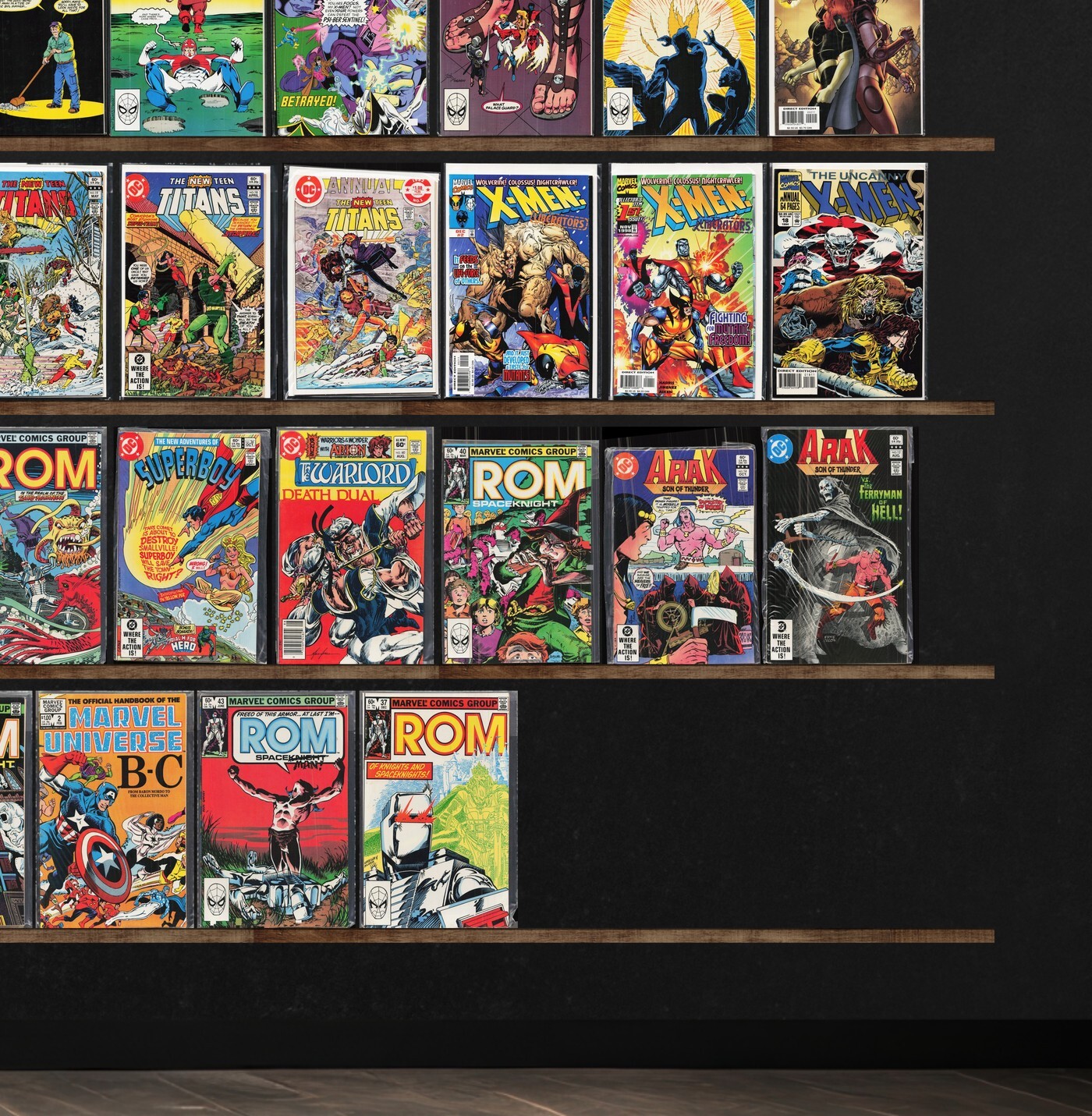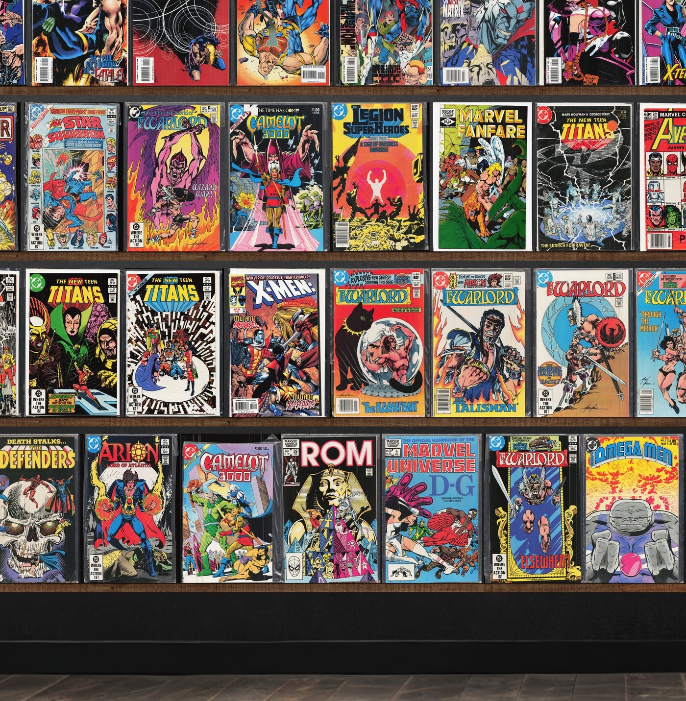 Excalibur, X-Factor, Warlord, Prime, X-Man, Rom, Camelot 3000, X-Men: Liberators, Ultraforce, Team America, Lord Pumpkin/Necromantra, Marvel Comics Presents, Knights Of Pendragon, X-Men: Phoenix, Micronauts, Dazzler, All Star Squadron, Legion Of Super Heroes, Marvel Fanfare, The Avengers, All Star Squadron Annual, The Defenders, The Omega Men, Rom Annual