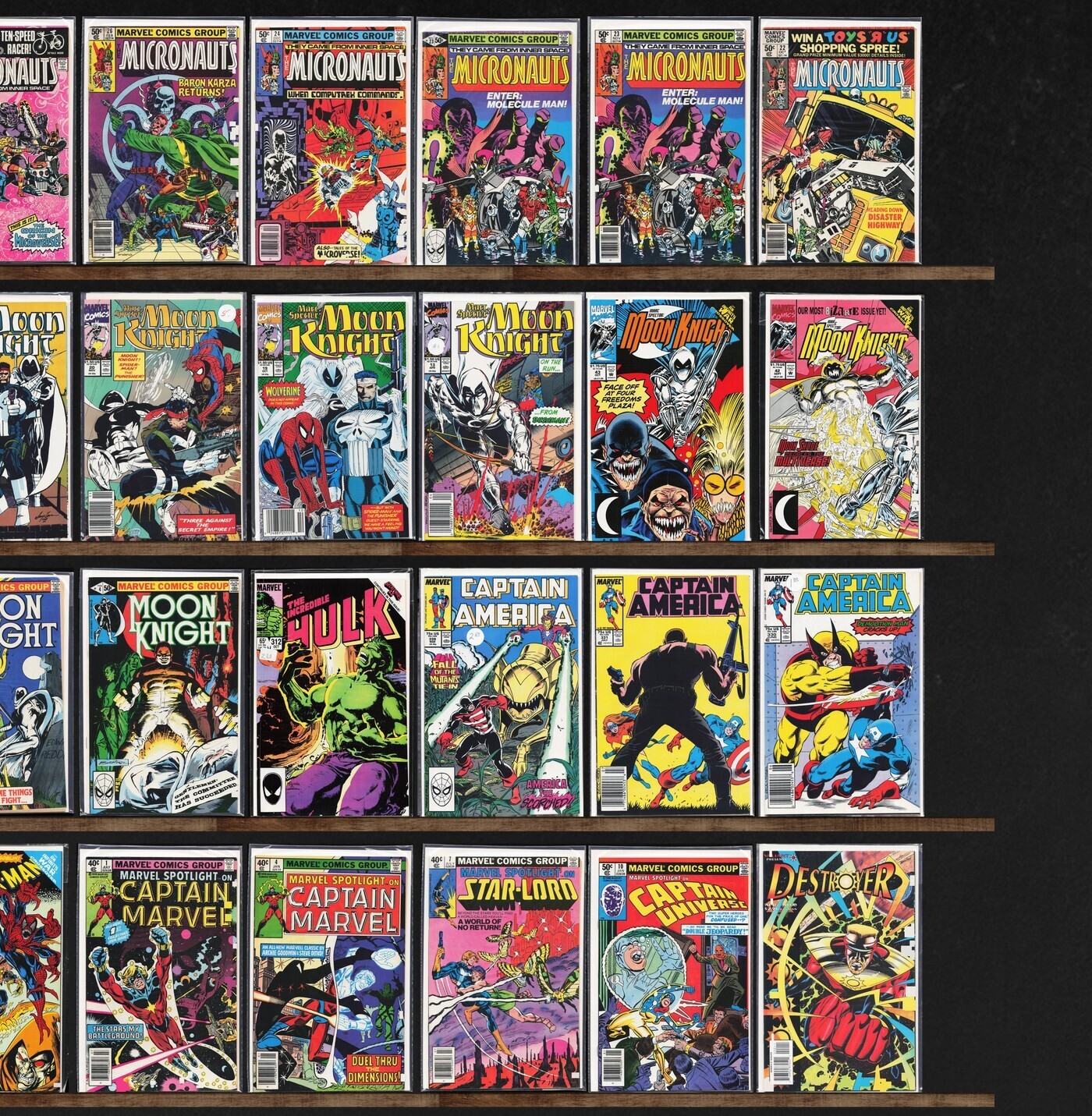 Iron Man, The Defenders, Spider-Man, Micronauts, Captain America, The Incredible Hulk, Moon Knight, Marvel Spotlight, Spellbound, Midnight Sons Unlimited, Midnight Men, Destroyer (1995), Destroyer (1991), Spellbinders