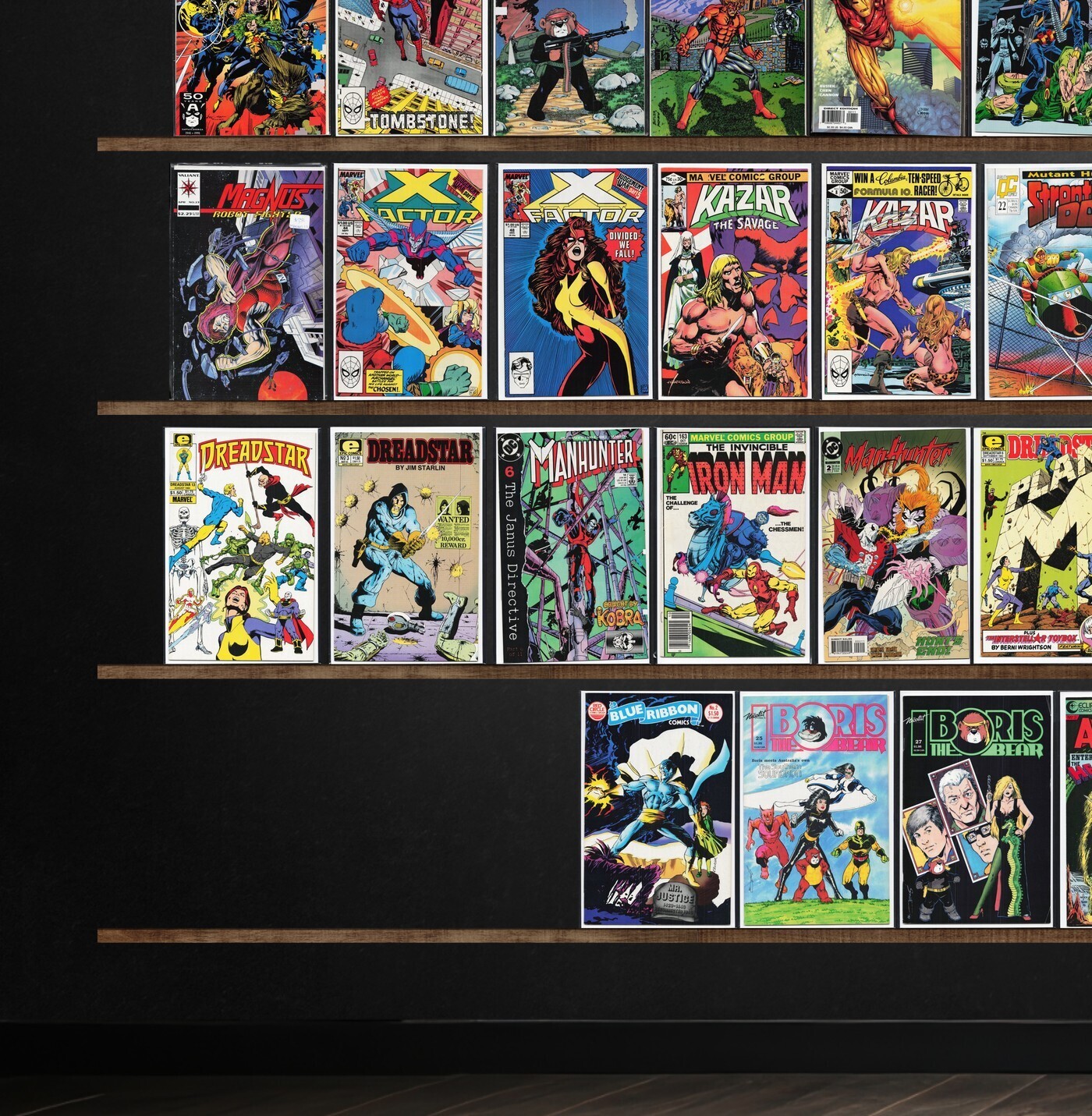 Manhunter, Airboy, X-Factor, Ka Zar The Savage, Boris The Bear, Magnus Robot Fighter, Nexus, The Spectacular Spider-Man, The H.A.R.D. Corps, Rai, The Badger, The Flash, Turok, Dinosaur Hunter, Silver Surfer, Iron Ma ... Read More