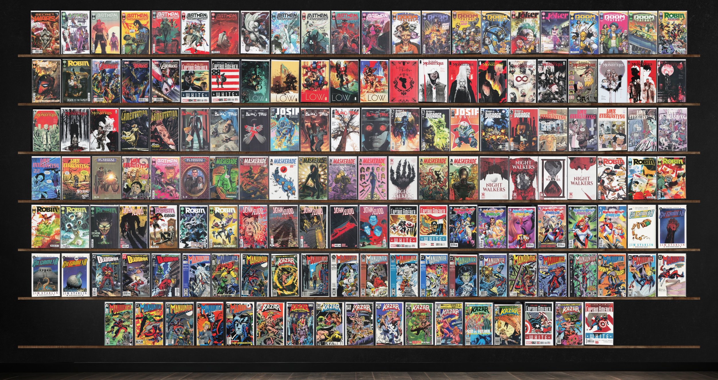 Manhunter, Little Monsters, Batman Incorporated, Robin, Ka Zar The Savage, Love Everlasting, Maskerade, Unstoppable Doom Patrol, Captain America: White, Blood Tree, John Flood, Low, Nightwalkers, Order & Outrage, Gi ... Read More
