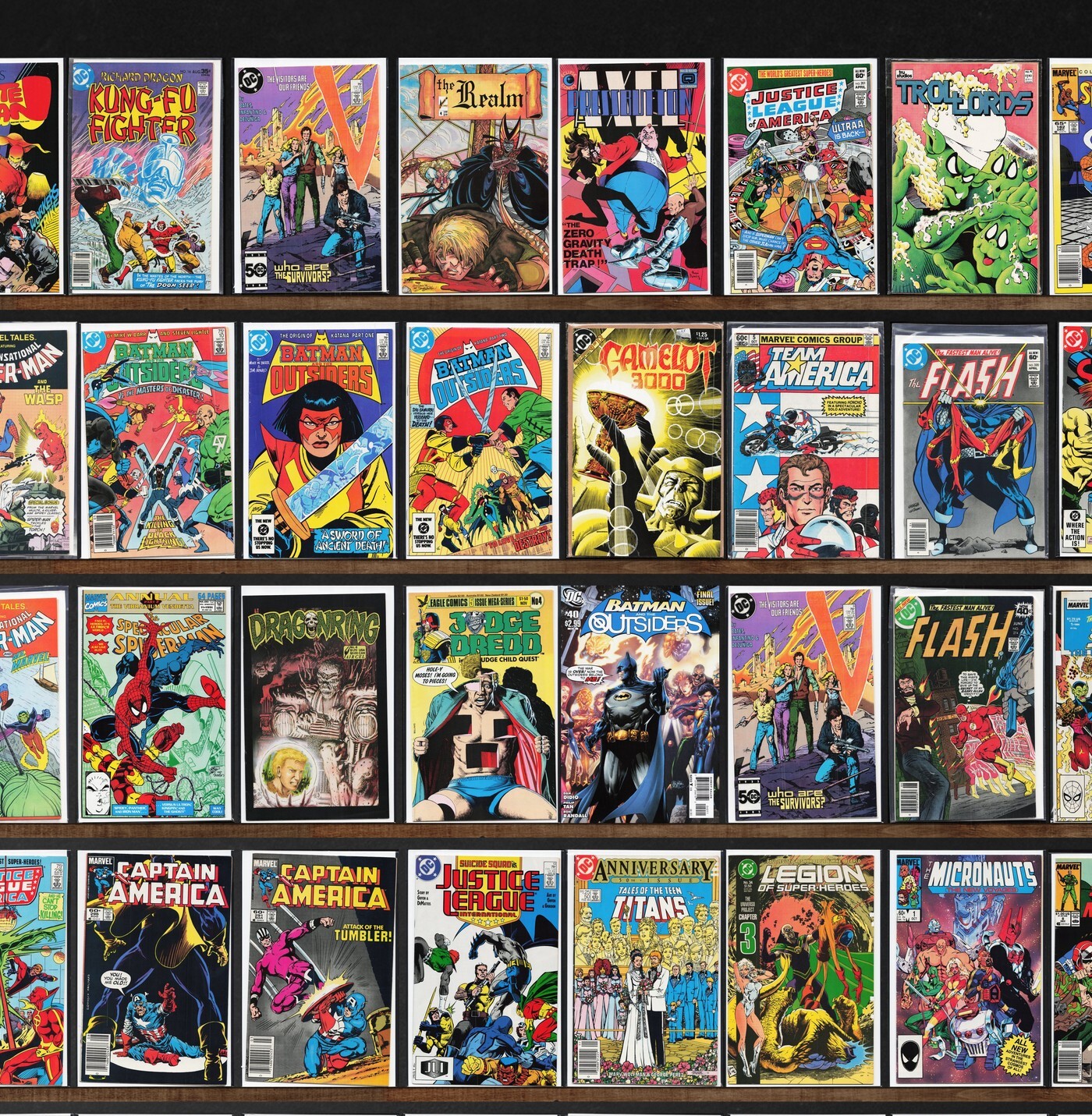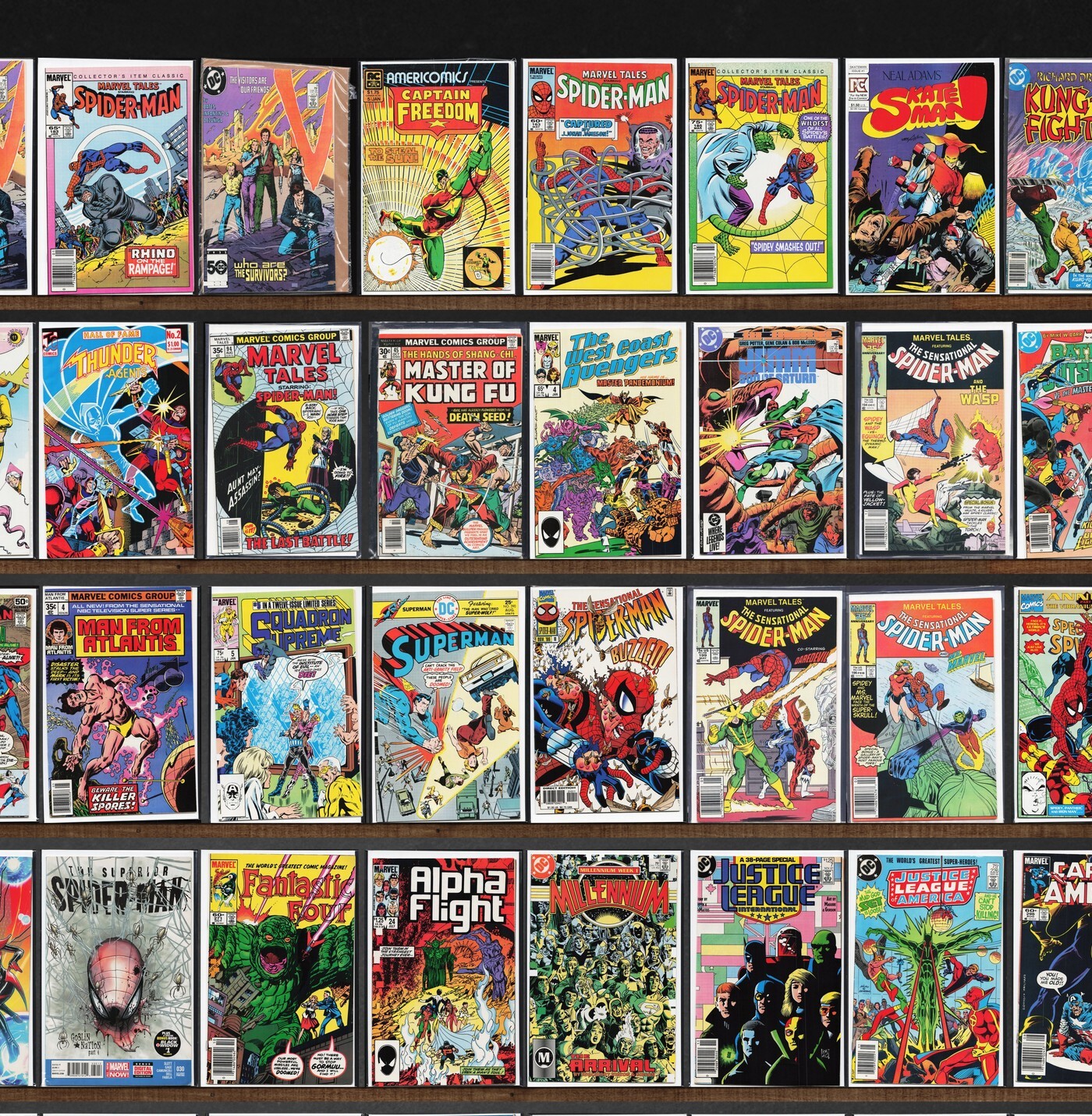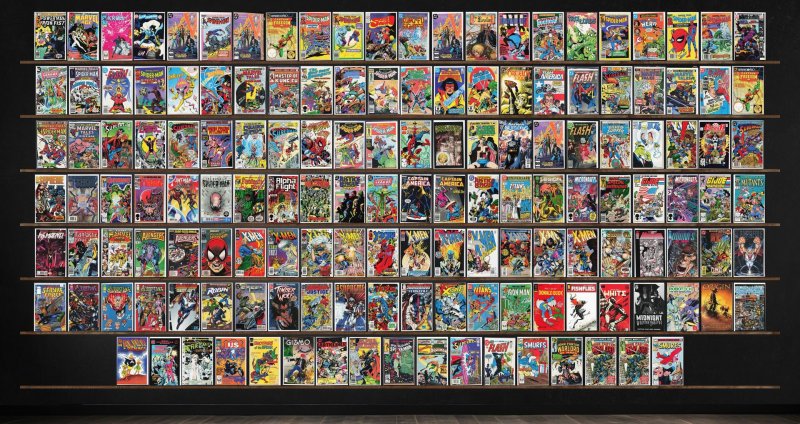 Marvel Tales, X-Men, The Flash, Superman, Bloodstrike, V, The Uncanny X-Men, Marvel Age, Americomics, Adventure Comics, Supreme, Fantastic Four, Alpha Flight, Justice League International, Captain America, The Spectacular Spider-Man, Youngblood Strikefile, Smurfs, Krull, Blue Ribbon Comics, Skateman (1983) Skateman, Realm, Axel Pressbutton, Trollords, Shield: Steel Sterling, Dnagents, West Coast Avengers, Camelot 3000, Team America, Cosmic Boy, Man From Atlantis, Squadron Supreme, The Sensational Spider-Man, The Outsiders, Silver Surfer Annual, The Incredible Hulk, The Punisher 2099, Action Comics, The Mighty Thor, Visionaries, Machine Man, Superior Spider-Man, Millennium, Legion Of Super Heroes, G.I. Joe Yearbook, The New Mutants, Ms. Marvel, The Avengers, The Avengers Annual, Astonishing X-Men, Doom'S Iv, The Malibu Sun, Codename: Strykeforce, Robin, Steel, Timber Wolf, Extreme Justice, Venom: The Mace, X-Force, Iron Man, Donald Duck, Fishflies, White, Midnight Western Theatre, Origin, Alien Ducklings, Bold Adventure, Pacific Presents, U.S. 1, Gizmo, Earthlore