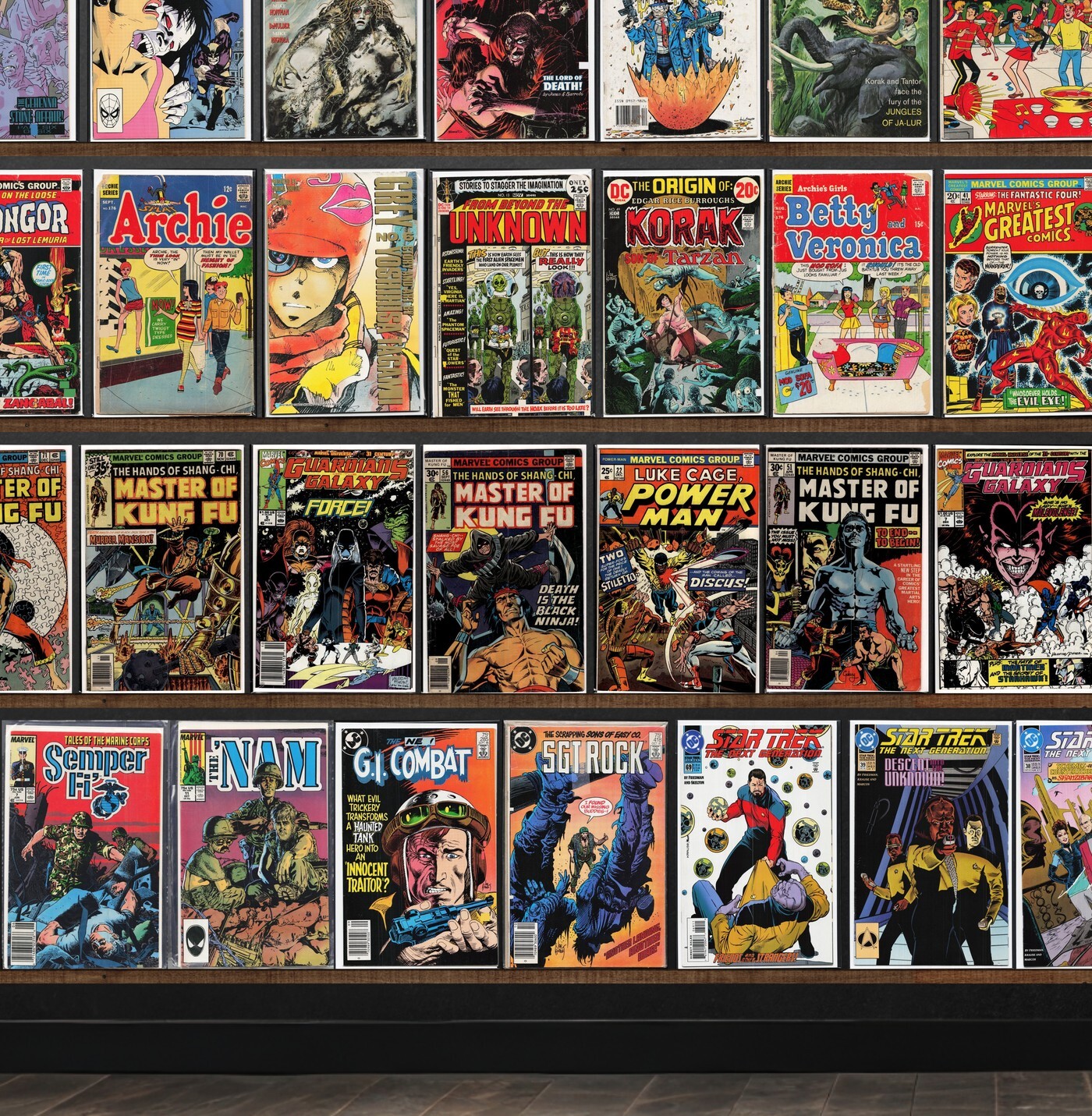 Sgt. Rock, Wolverine, Detective Comics, The Groo Chronicles, The Shadow Strikes, Laugh, G.I. Combat, Batman Annual, Archie, Batman, Jughead, Unknown Soldier, Prez, The Amazing Spider-Man, Blackhawk, Secret Origins, Swamp Thing Annual, Sleeze Brothers, Drag N' Wheels, Silverblade, Grey, Marvel'S Greatest Comics, Tom And Jerry, Archie And Me, The Demon, Flash Gordon, Secret Wars Ii, Thor, Power Man, Fantastic Four, Warlock, Super Team Family, Sgt. Fury, Marvel Tales, Semper Fi, The 'Nam