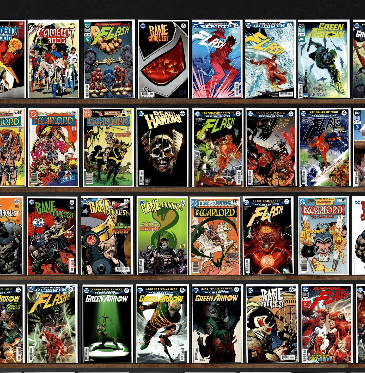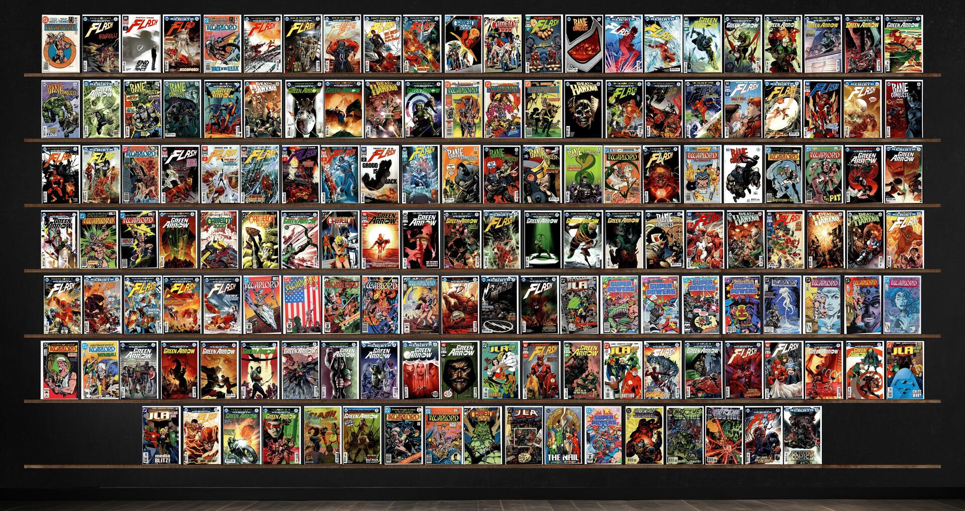 The Flash, Green Arrow, Warlord, Bane: Conquest, Camelot 3000, Death Of Hawkman, Jla: Year One, Super Powers, Extreme Justice, The Flash Annual, Previews, Detective Comics