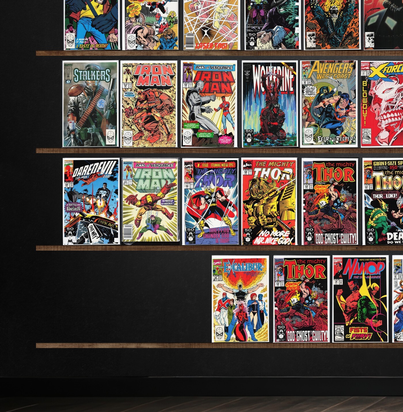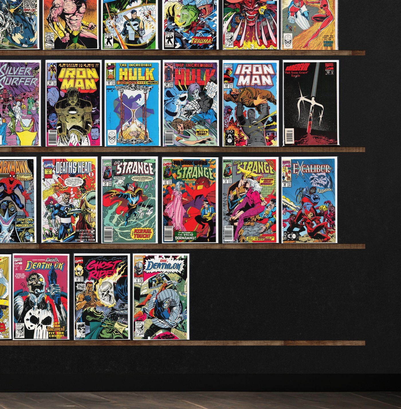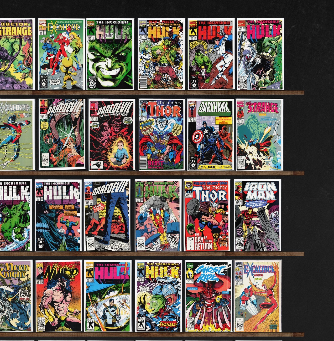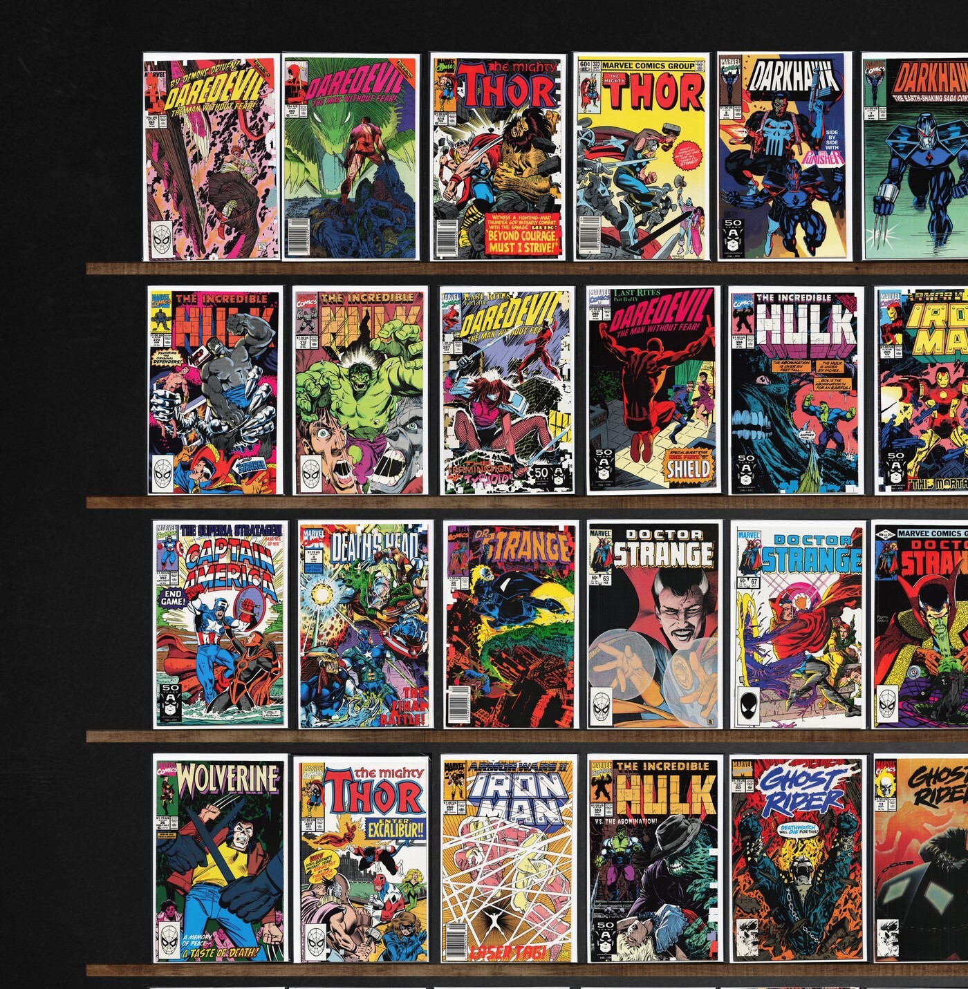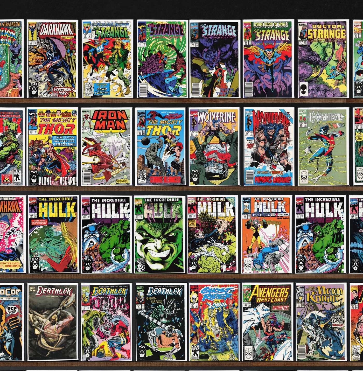The Incredible Hulk, The Mighty Thor, Daredevil, Iron Man, Ghost Rider, Darkhawk, Excalibur, Deathlok, Doctor Strange, Wolverine, Death&, Captain America, Avengers West Coast, Namor, The Sub Mariner, X-Force, Thor, ... Read More