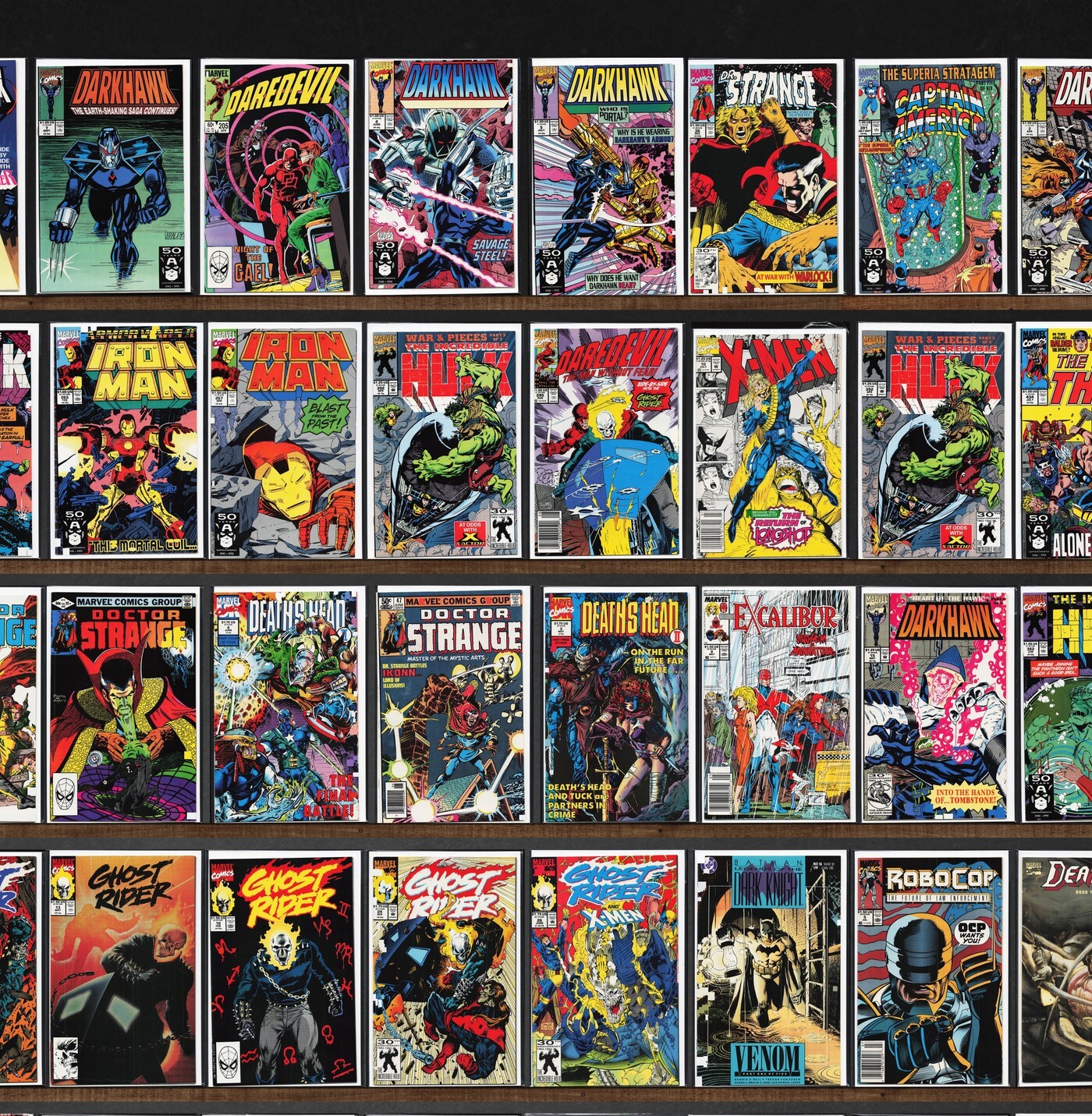 The Incredible Hulk, The Mighty Thor, Daredevil, Iron Man, Ghost Rider, Darkhawk, Excalibur, Deathlok, Doctor Strange, Wolverine, Death&, Captain America, Avengers West Coast, Namor, The Sub Mariner, X-Force, Thor, X-Men, Robocop, Stalkers, X-Factor, The Infinity War, Silver Surfer, Death'S Head Ii, Fantastic Four, Black Knight, The Avengers