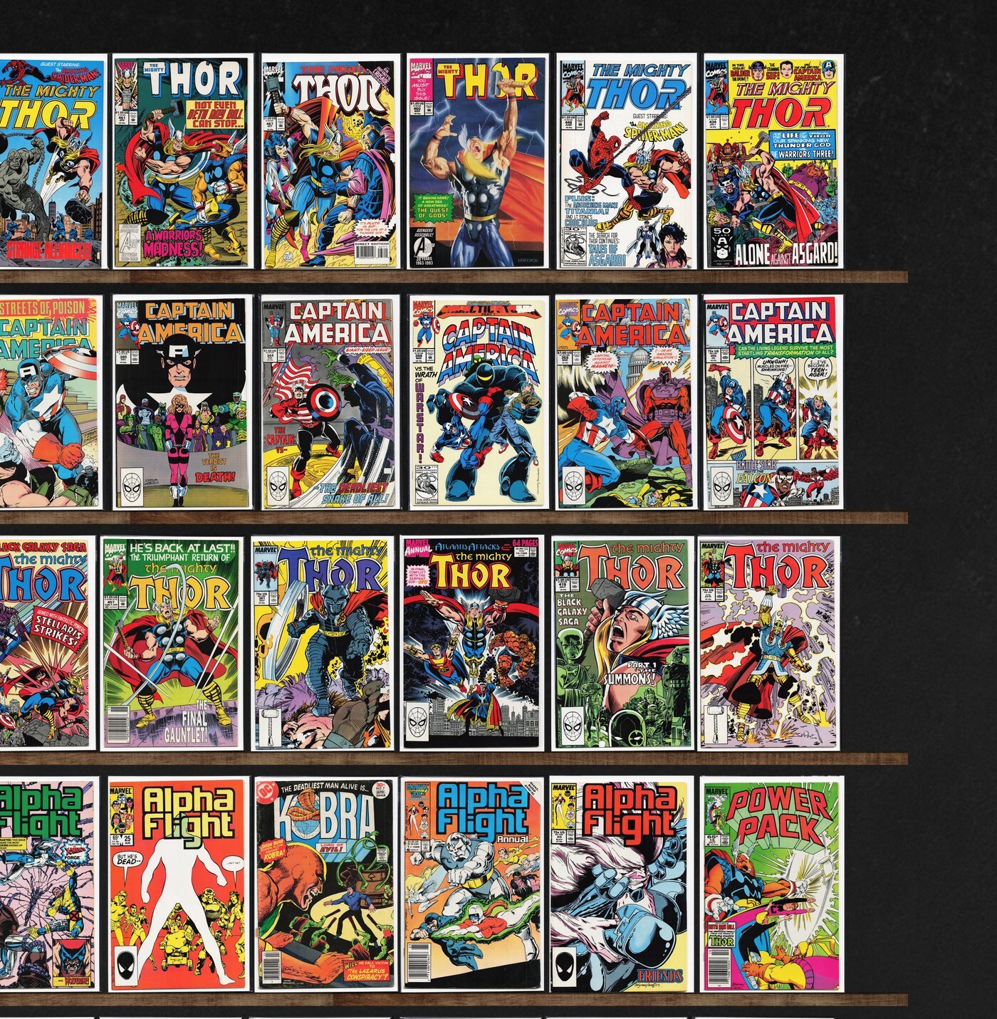 The Mighty Thor, Alpha Flight, Captain America, Thor, Wonder Man, Doom 2099, The Invaders, Bart Simpson, The Spectacular Spider-Man, Spider-Man, Team America, U.S.Agent, Excalibur, Thor Corps, Fantastic Four Annual, ... Read More