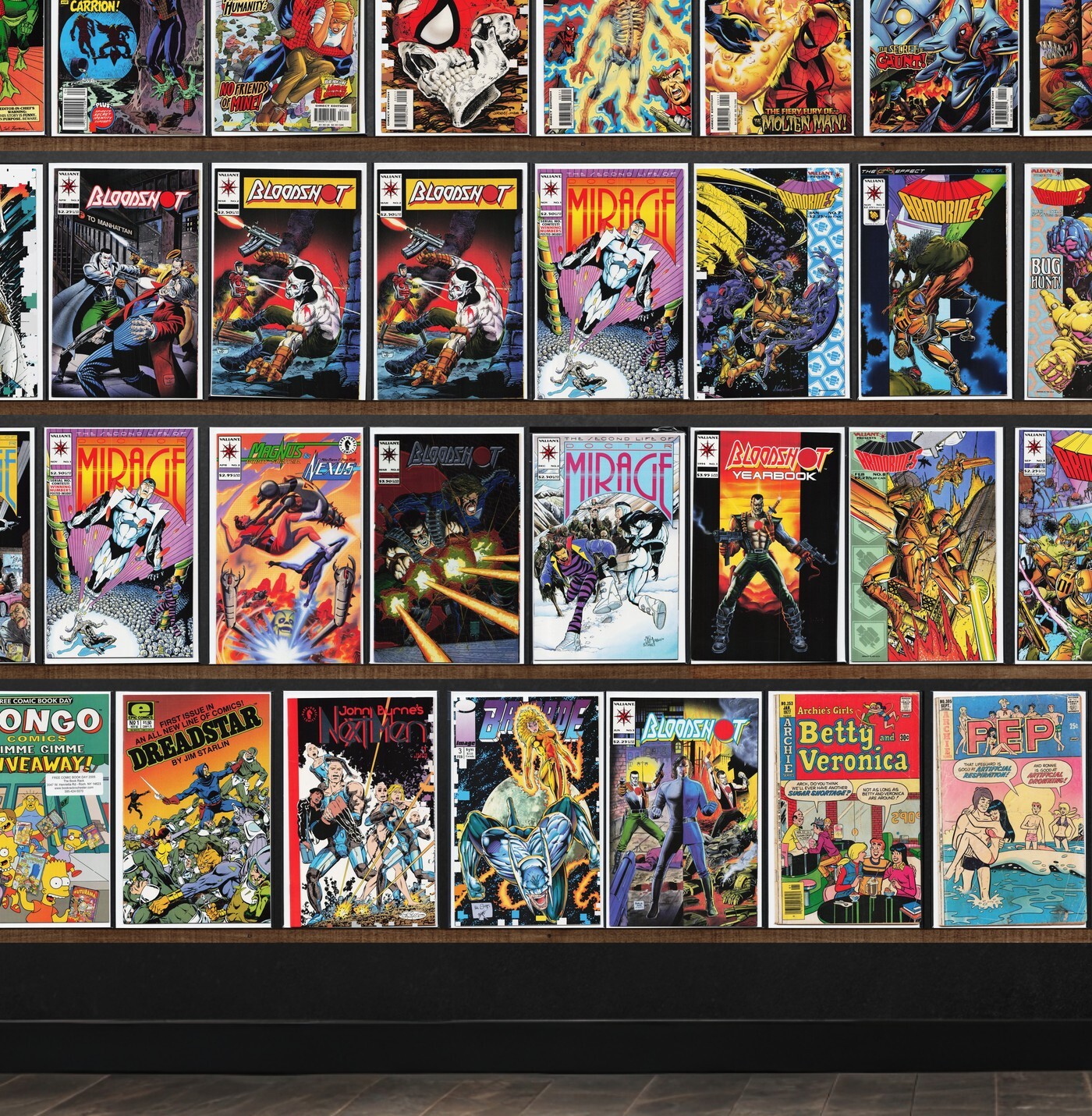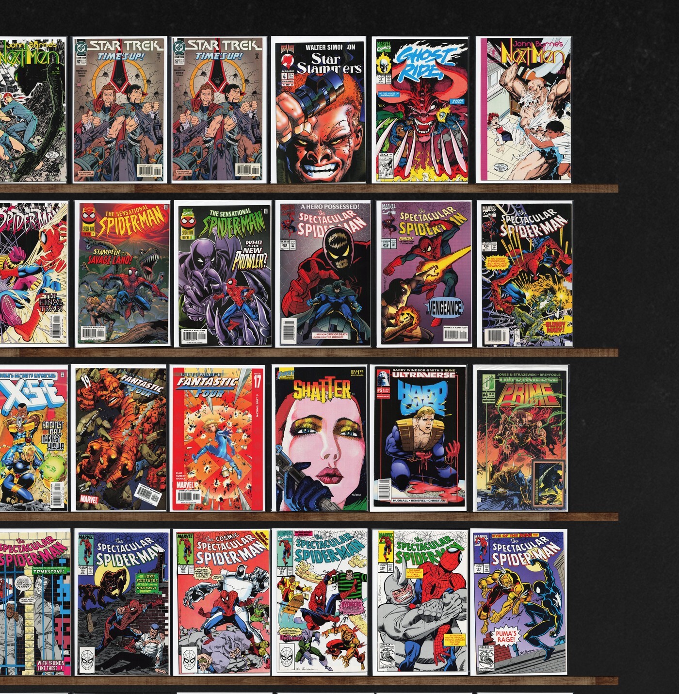 The Spectacular Spider-Man, Ghost Rider, The Sensational Spider-Man, Armorines, Bloodshot, Spider-Man, Archer & Armstrong, Star Trek, Ultimate Fantastic Four, Dragon Lines, Brigade, Fantastic Four, Hardcase, Laugh, John Byrne&, Star Slammers, Dreadstar, Concrete: Killer Smile, The Strangers, Scavengers, Strikeback!, Shatter (Special) (1985), Man From Atlantis, Night Thrasher, Xse, Shatter, Prime, Man Of War, Firearm, Thor, The Maxx, Spider-Woman, Reggie And Me, Pep Comics, Dennis The Menace, Archie'S Tv Laugh Out, Life With Archie, Destroyer (1995)