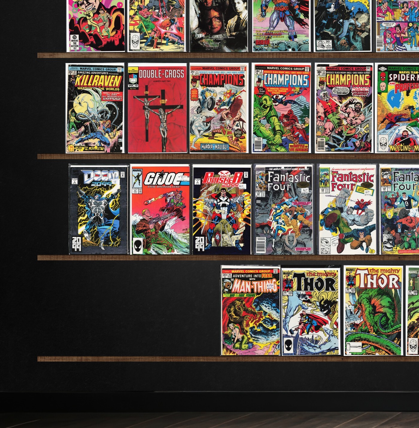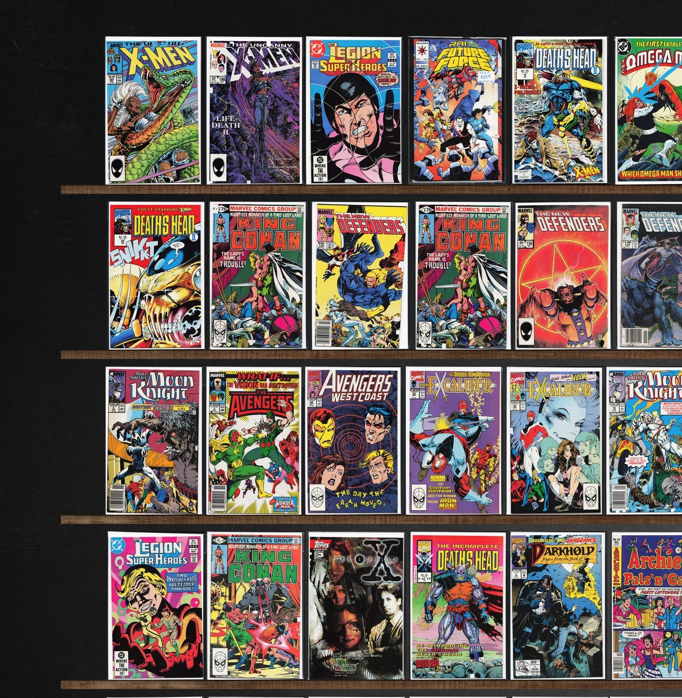 Thor, The Uncanny X-Men, Amazing Adventures, Legion Of Super Heroes, The Defenders, Daredevil, King Conan, The Crusaders, The Champions, Fantastic Four, Captain America, Fallen Angels, Death'S Head Ii, The Flash, Dakota North, Nova, The X-Files, The Sensational She Hulk, Avengers West Coast, Excalibur, Killadelphia, Laugh, The Mighty Thor, Silver Surfer, Rai, The Omega Men, Battletide, Video Jack, Jughead'S Jokes, Ravage 2099, Death&, Damage Control, Steeltown Rockers, Hero, Dazzler, Captain Justice, What If...?, Doctor Strange, Hercules, Power Pack, Coyote, Doctor Zero, St. George, Stalkers, New Masters, Redneck, Betty And Me, Pep Comics, Reggie And Me, Everything'S Archie, Chili, Marvel Team Up, Marvel Two In One, D.P.7, Spellbound, Visionaries, Ghost Rider, Doom 2099, Punisher 2099, Wolverine, Sabretooth, X-Force, Secret Wars Ii, Archie&, Ambush Bug, Adventure Into Fear, Turok, Dinosaur Hunter, Darkman, The Spectacular Spider-Man, Cable