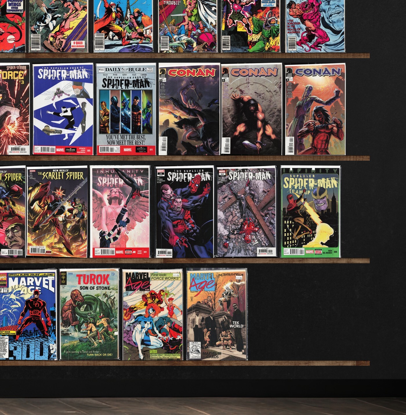 Turok, Dinosaur Hunter, Ultimate Spider-Man, King Conan, Namor, The Sub Mariner, Conan The King, Spider-Man Unlimited, Marvel Fanfare, Marvel Age, Spider-Man Team Up, Conan, Spider-Man Saga (1991), The Infinity War, Marvel Team Up, Superior Spider-Man Team Up, Spider-Force, Superior Spider-Man, The New Warriors, Nova, Spider-Girls, Friendly Neighborhood Spider-Man, Ultimate Invasion, Hercules