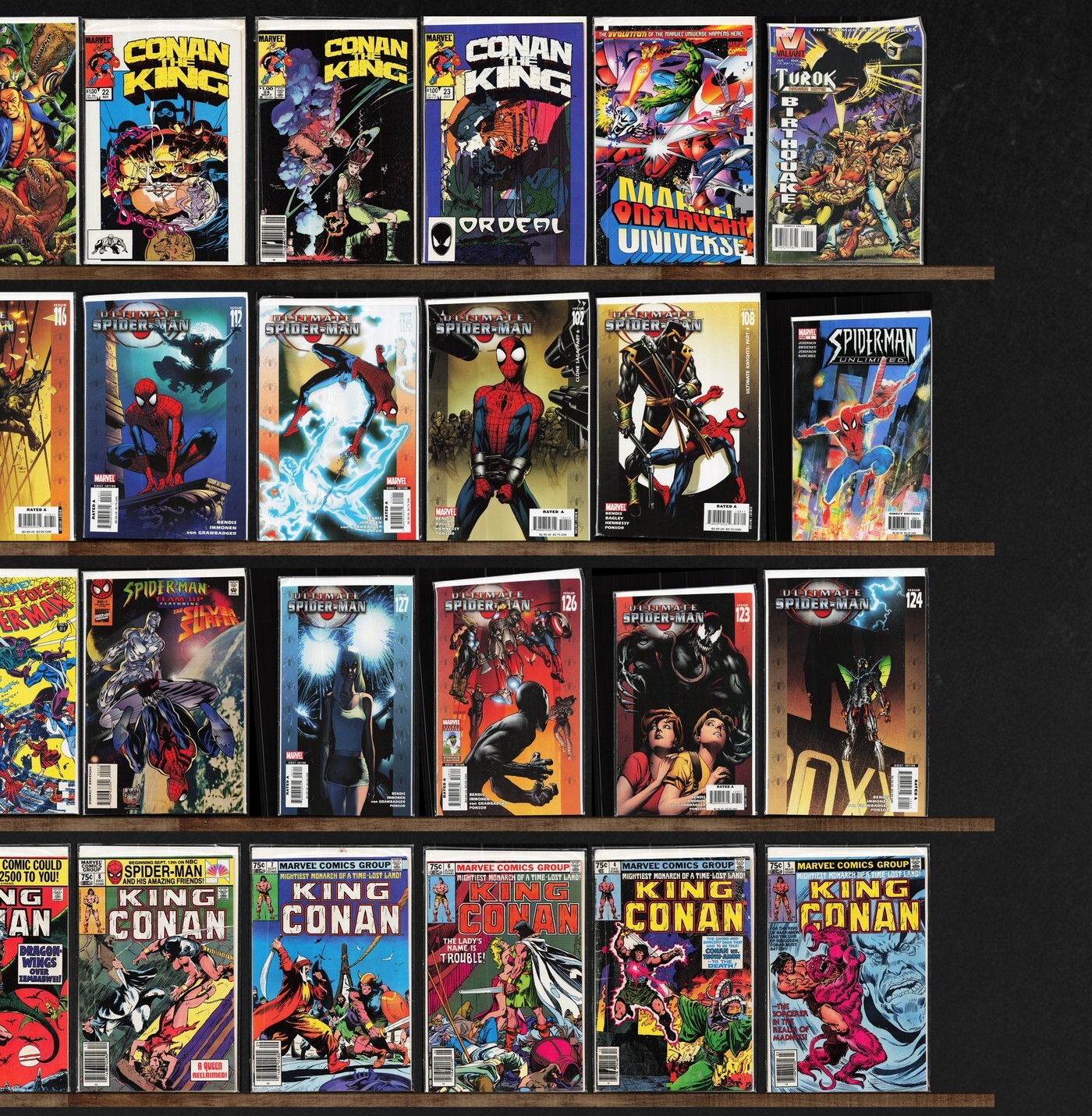 Turok, Dinosaur Hunter, Ultimate Spider-Man, King Conan, Namor, The Sub Mariner, Conan The King, Spider-Man Unlimited, Marvel Fanfare, Marvel Age, Spider-Man Team Up, Conan, Spider-Man Saga (1991), The Infinity War, ... Read More