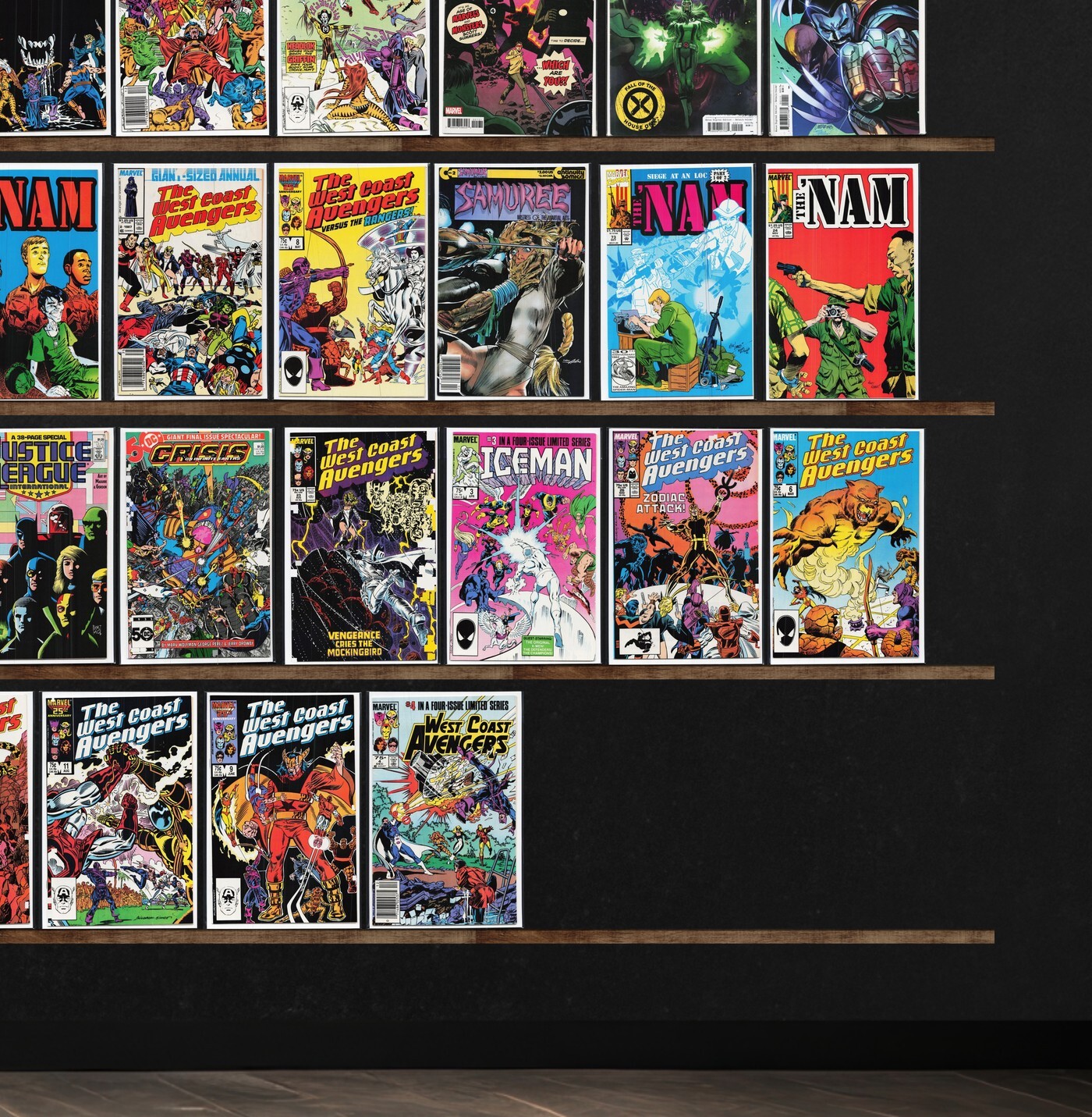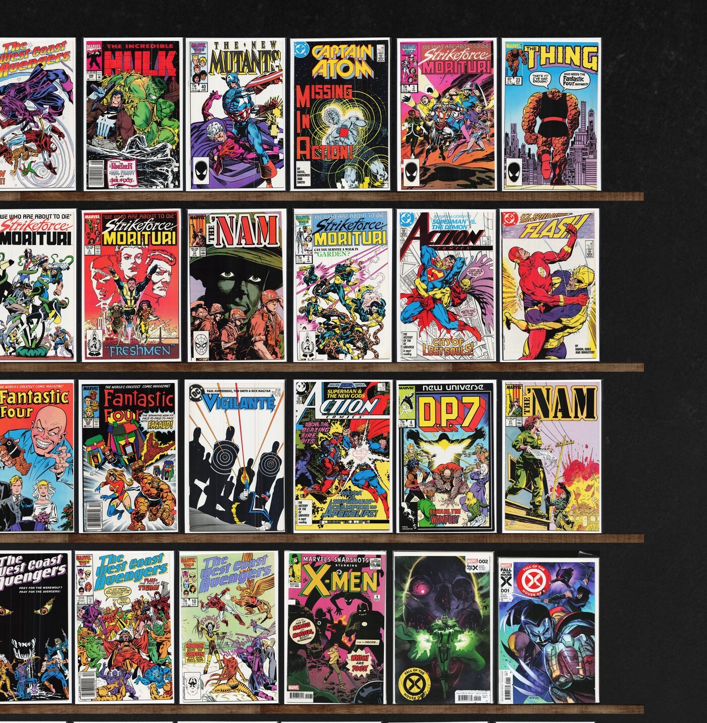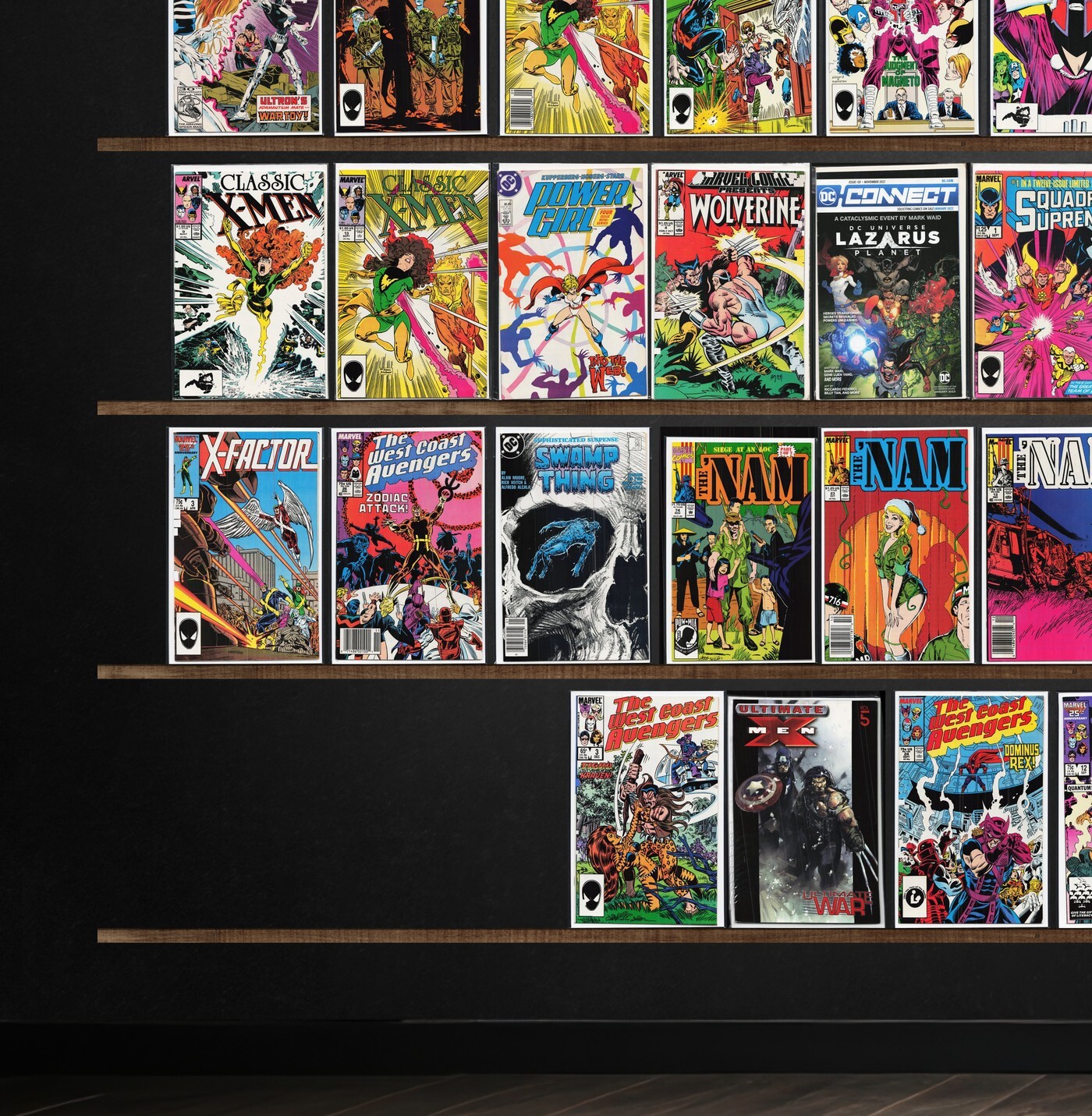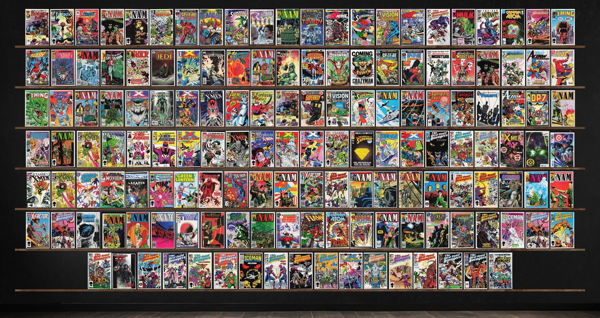 West Coast Avengers, The 'Nam, The &, X-Factor, Fantastic Four, Classic X-Men, Strikeforce: Morituri, Captain Marvel, Iceman, Superman, Captain Atom, The Flash, Deadman, Zero Patrol, The Incredible Hulk, The Thing, Machine Man, Action Comics, Avengers West Coast, Magnus Robot Fighter, Toyboy, The New Mutants, The Spectacular Spider-Man, Crazyman, Superboy, Vigilante, D.P.7, Fallen Angels, Mephisto Vs. ..., Adventures Of Superman, X-Factor Annual, Power Girl, Marvel Comics Presents, Dc Connect, Squadron Supreme, Green Lantern, The Avengers, Spider-Man 2099, Samuree, Swamp Thing, The Spectre, Justice League International, Ultimate War